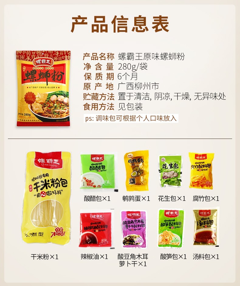 螺霸王 柳州螺蛳粉 广西特产速食米粉米线含鹌鹑蛋 休闲零食 280g/袋