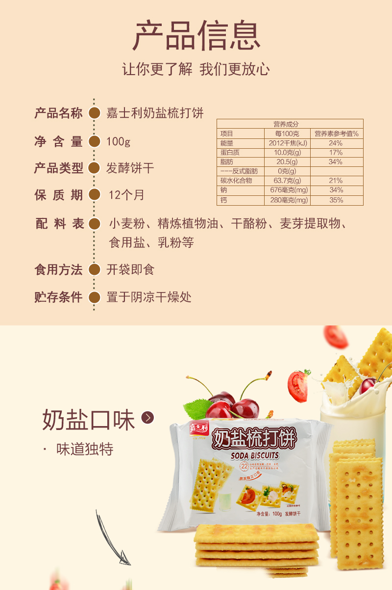 嘉士利 奶盐味梳打饼干 100g 苏打饼牛奶早餐代餐零食