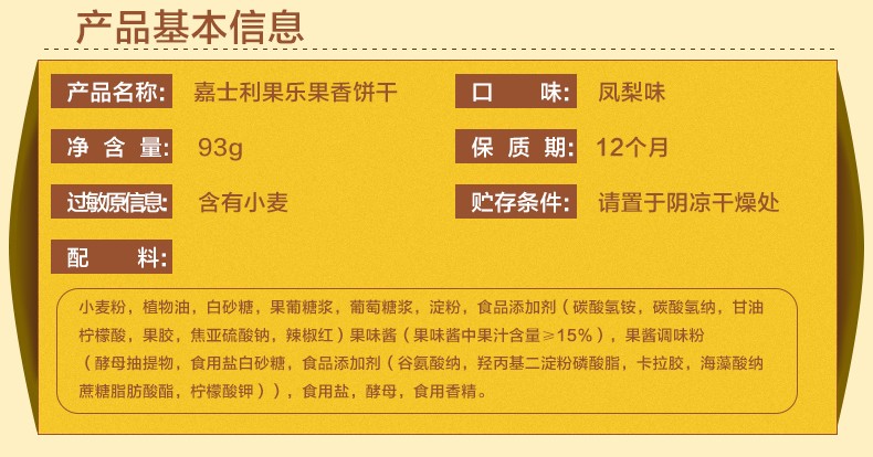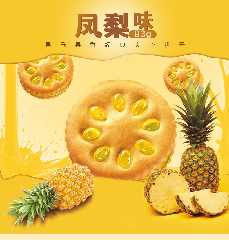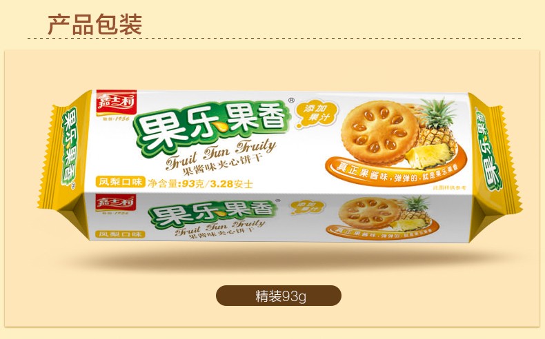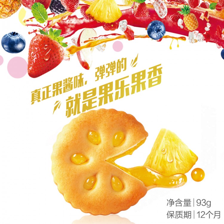 嘉士利 果乐果香 凤梨菠萝味果酱夹心饼干93g 代餐零食糕点吃货牛奶
