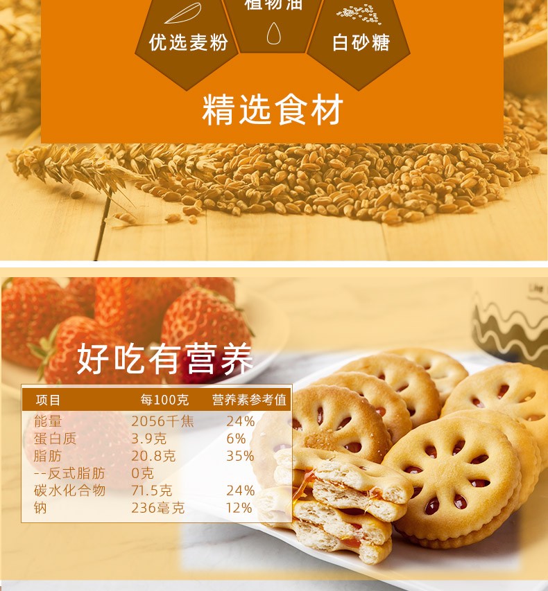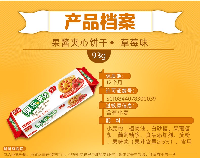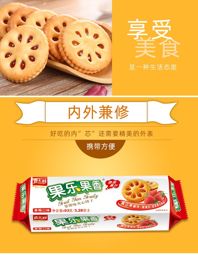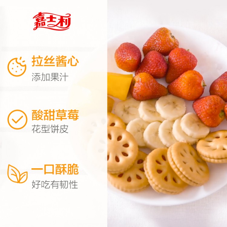 嘉士利 果乐果香草莓味果酱夹心饼干93g 代餐零食