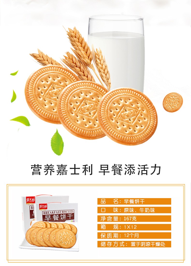 嘉士利 早餐饼干牛奶味 167g 薄脆饼干营养早餐休闲零食