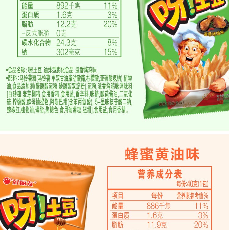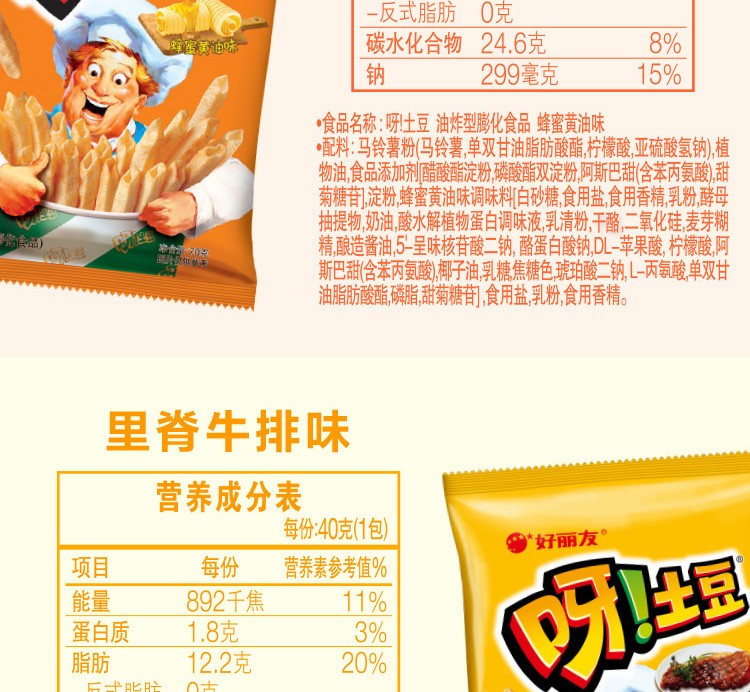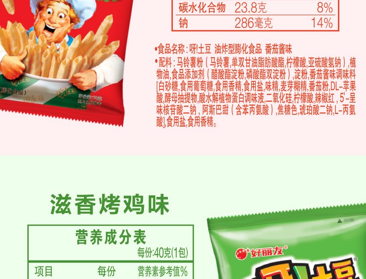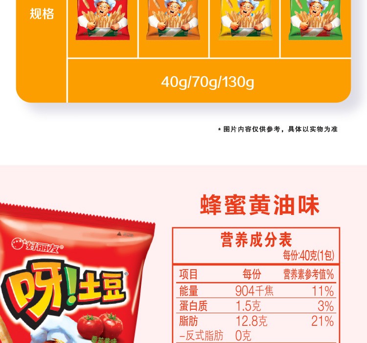 好丽友 呀土豆 番茄酱味 70g 休闲膨化零食薯片