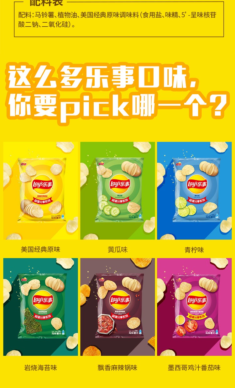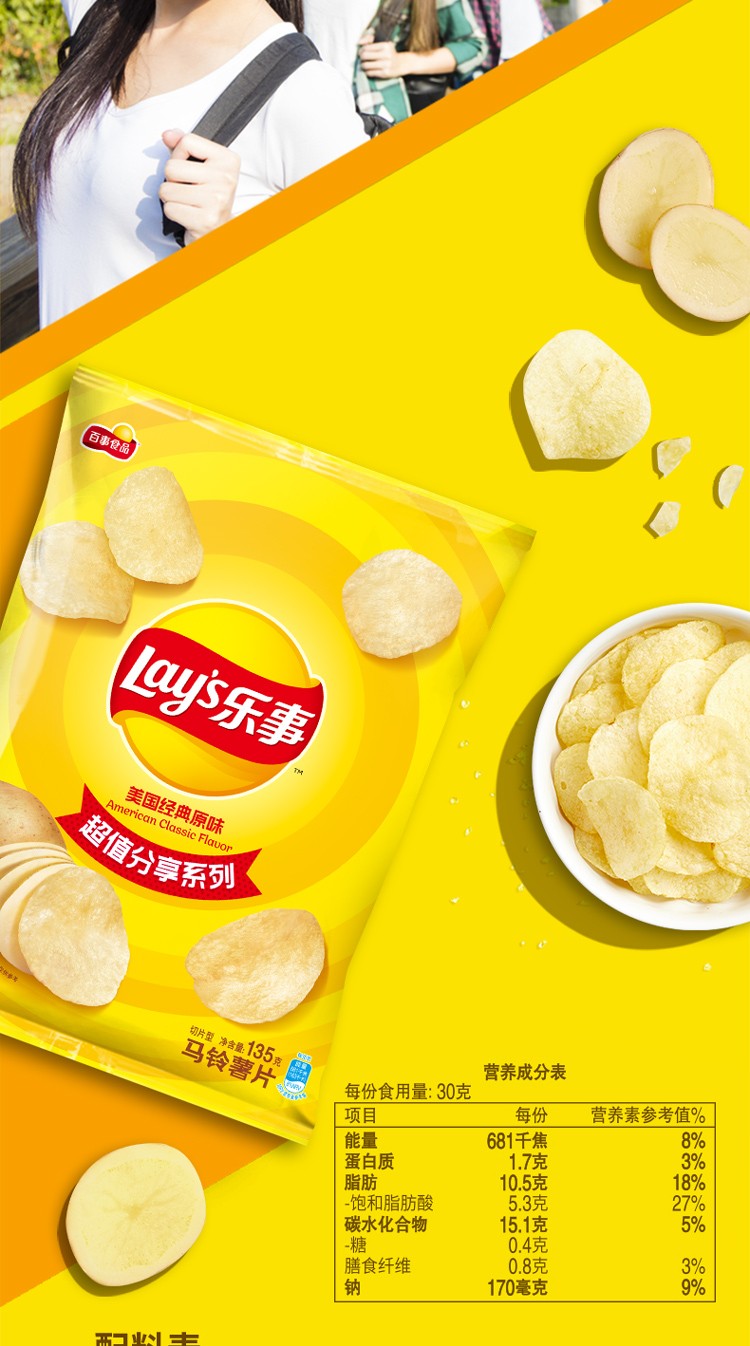 乐事薯片 美国经典原味 135克 休闲零食