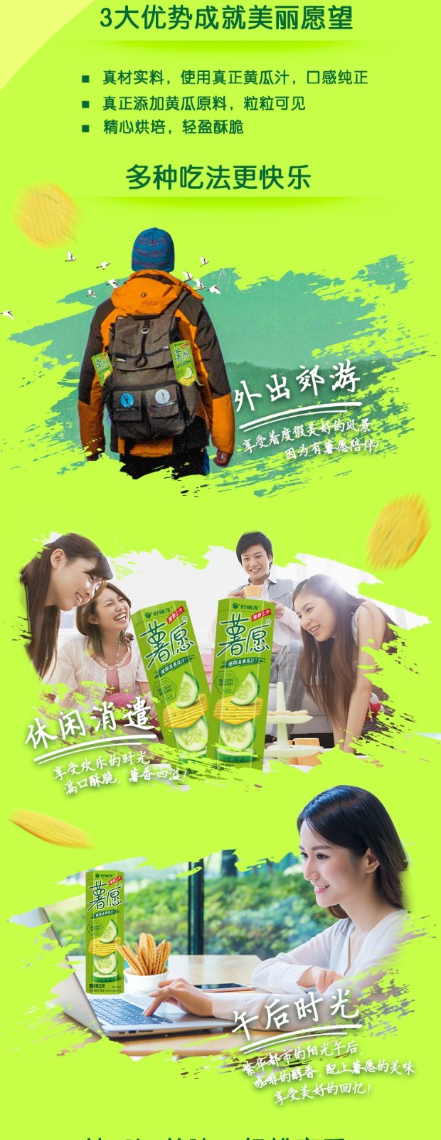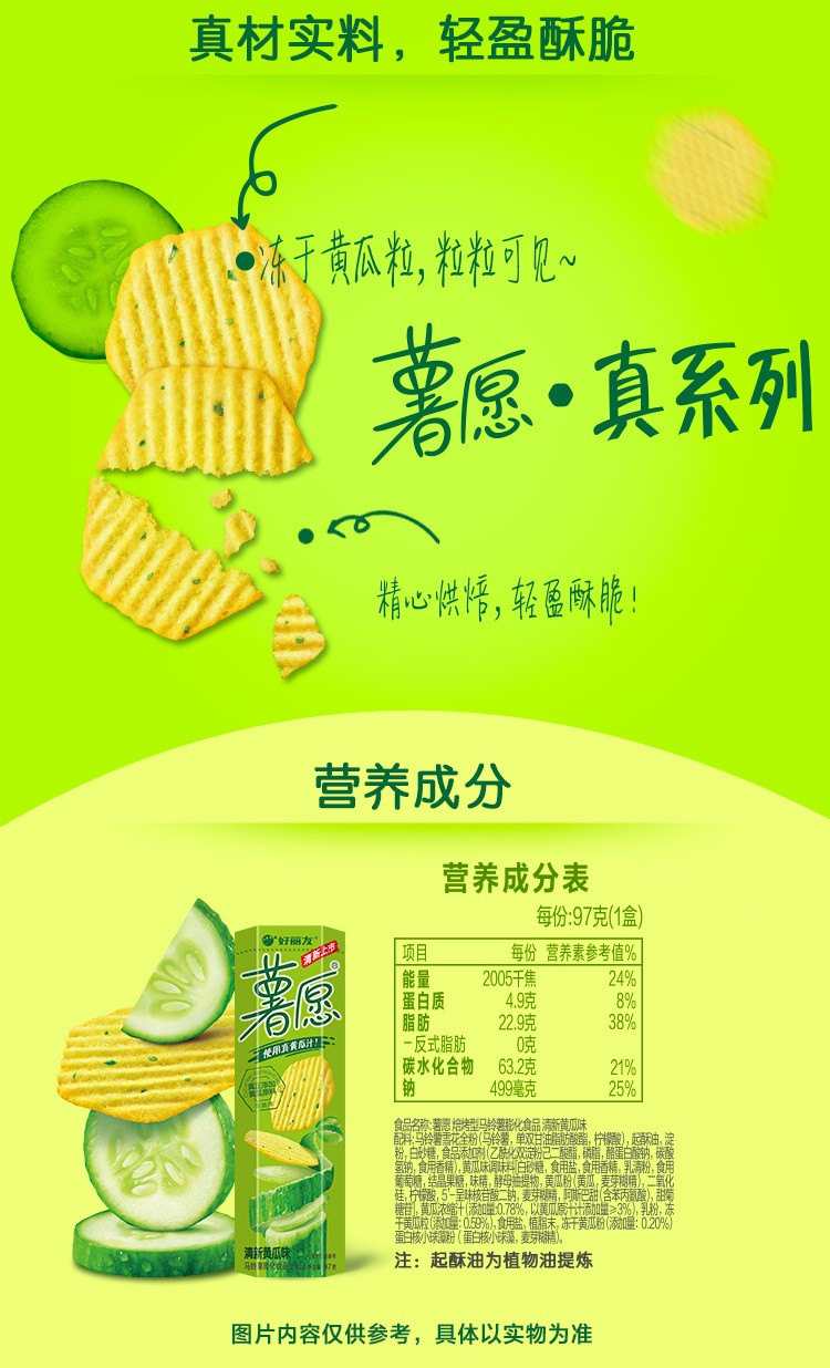 薯愿 清新黄瓜味 97g/盒 非油炸薯片 膨化零食 小吃
