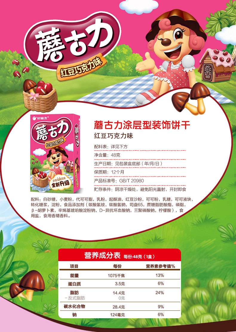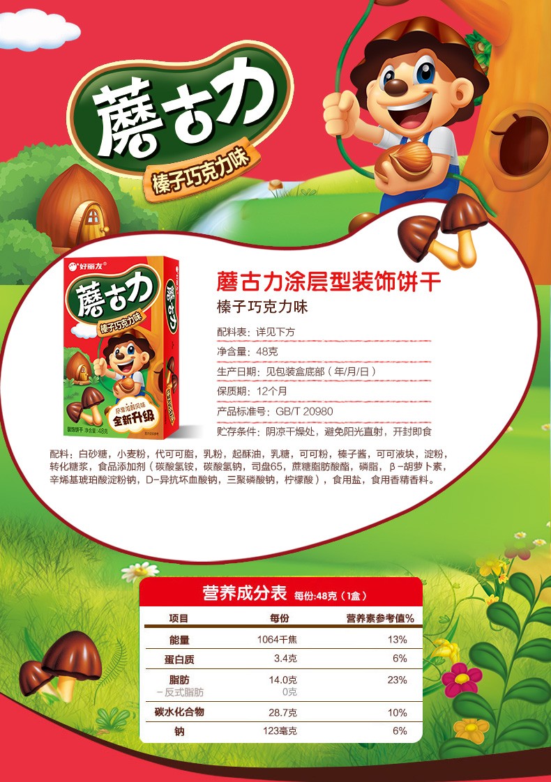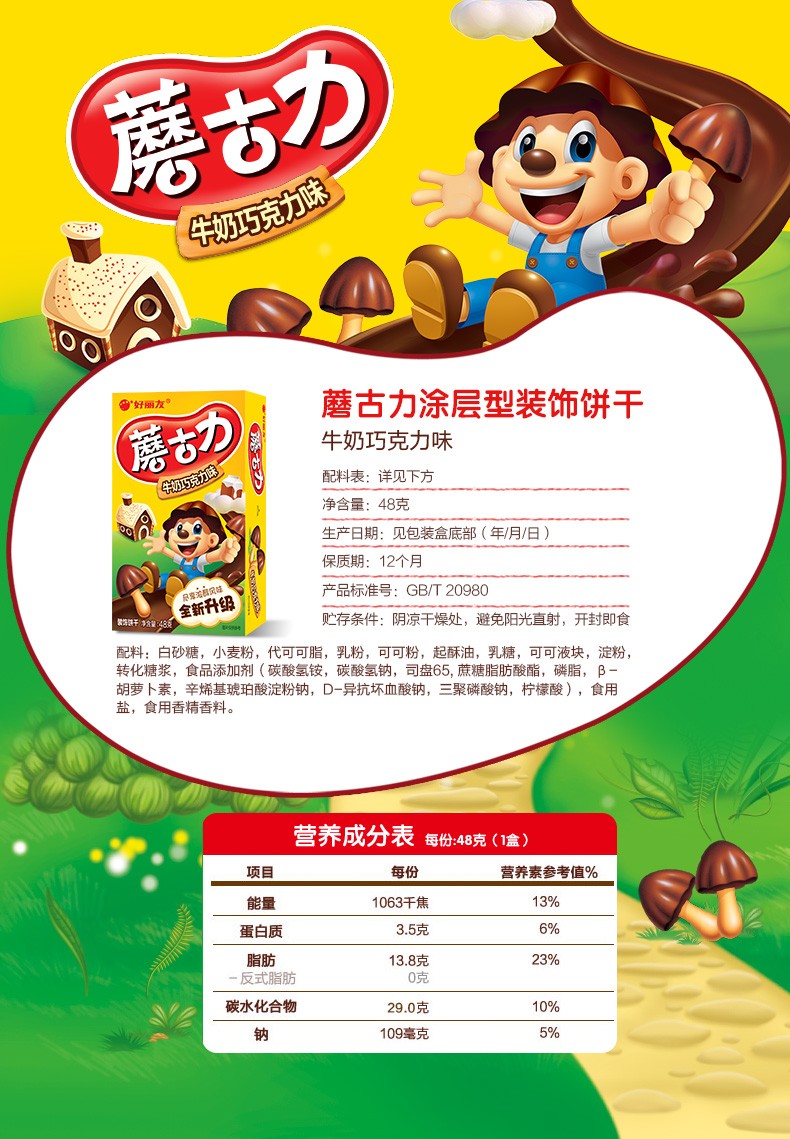 蘑古力 黄油巧克力味小饼干 44g/盒 儿童休闲零食品小吃