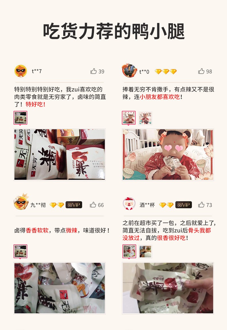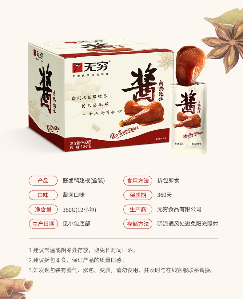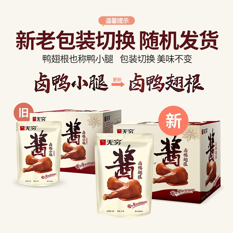 无穷 酱卤鸭翅根 30g/12包 卤鸭腿零食 微辣 休闲零食 独立小包装