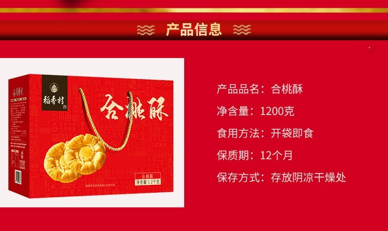 稻香村 合桃酥1200g/盒 点心糕点年货礼盒 零食大礼包 量贩装