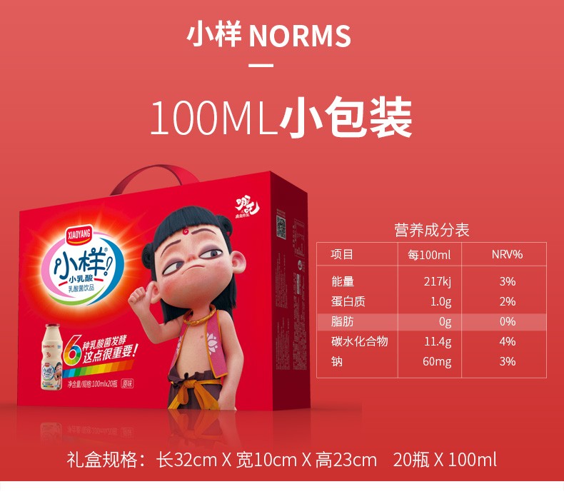 小样 哪吒版乳酸菌饮料 100ml*20瓶 礼盒装 儿童牛奶益生菌饮品 酸奶年货送礼