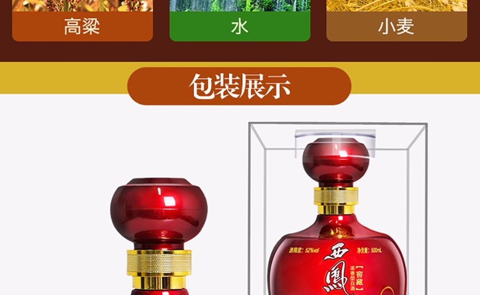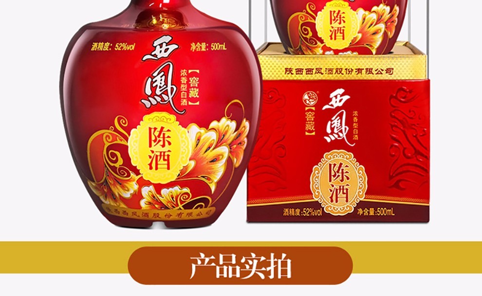 西凤酒 低度白酒陈酒窖藏 42度500ml/瓶 浓香型白酒 婚庆喜酒婚宴白酒