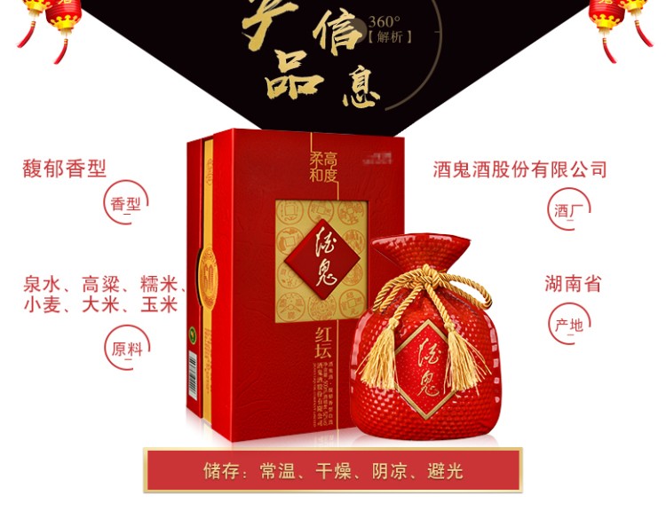 酒鬼 白酒 红坛 高度柔和 52度500ml 馥郁香型 酒鬼酒礼盒 陶瓷瓶