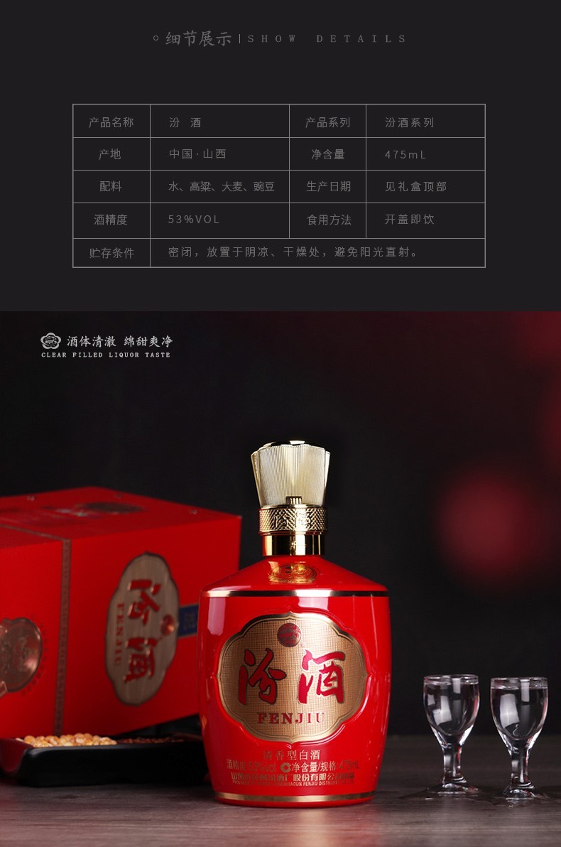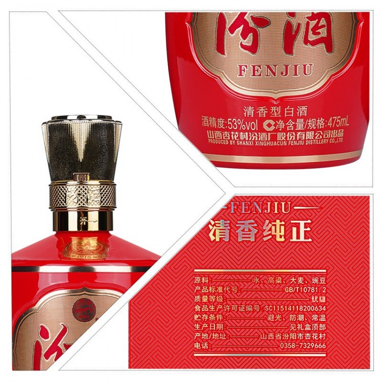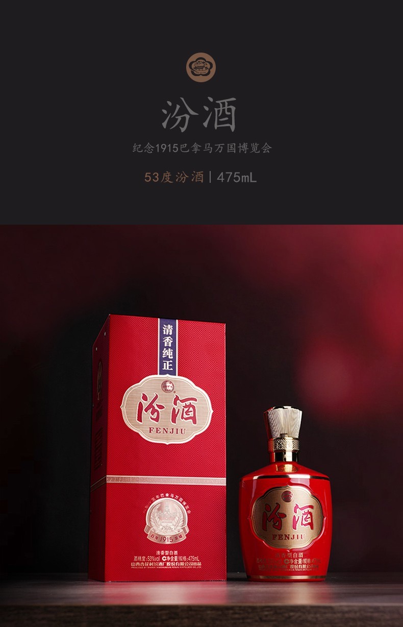 山西汾酒 杏花村酒 53度 1915巴拿马汾酒 475ml 礼盒装清香型白酒
