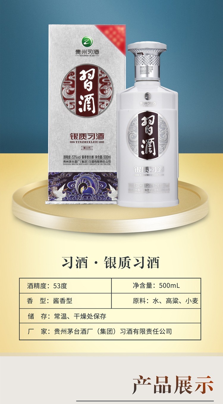 习酒 银质53度 酱香型白酒 500ml/瓶 茅台集团 贵州习酒(第三代新款)