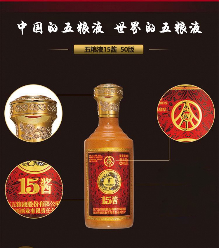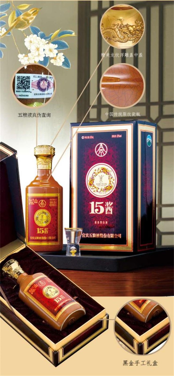 五粮液股份 15酱高度白酒 53度(50版) 500ml单瓶礼盒装