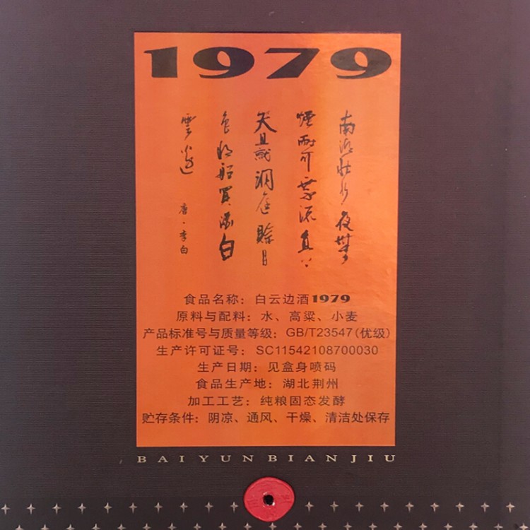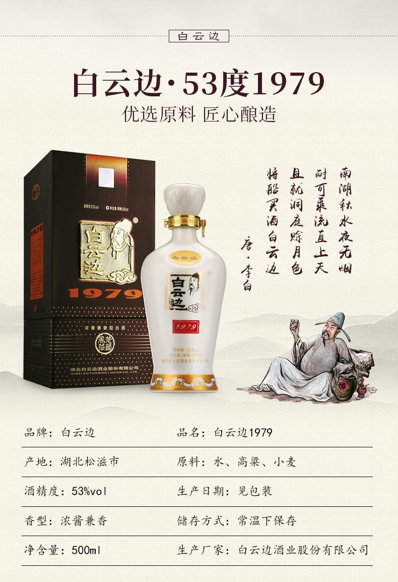 白云边1979 53度高度酒 国产白酒粮食酒 兼香型 500ml/瓶