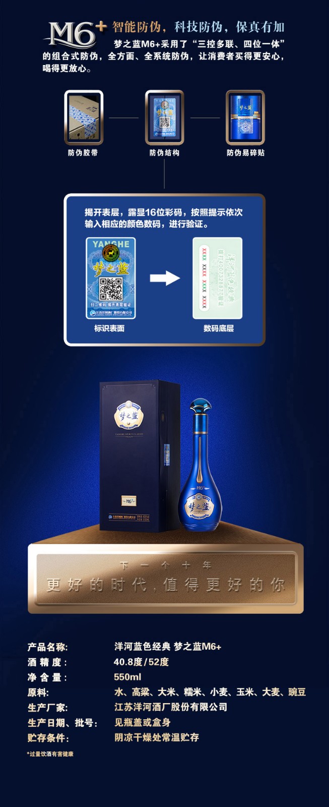 梦之蓝 M6+ 绵柔白酒 52度*550ml 洋河蓝色经典