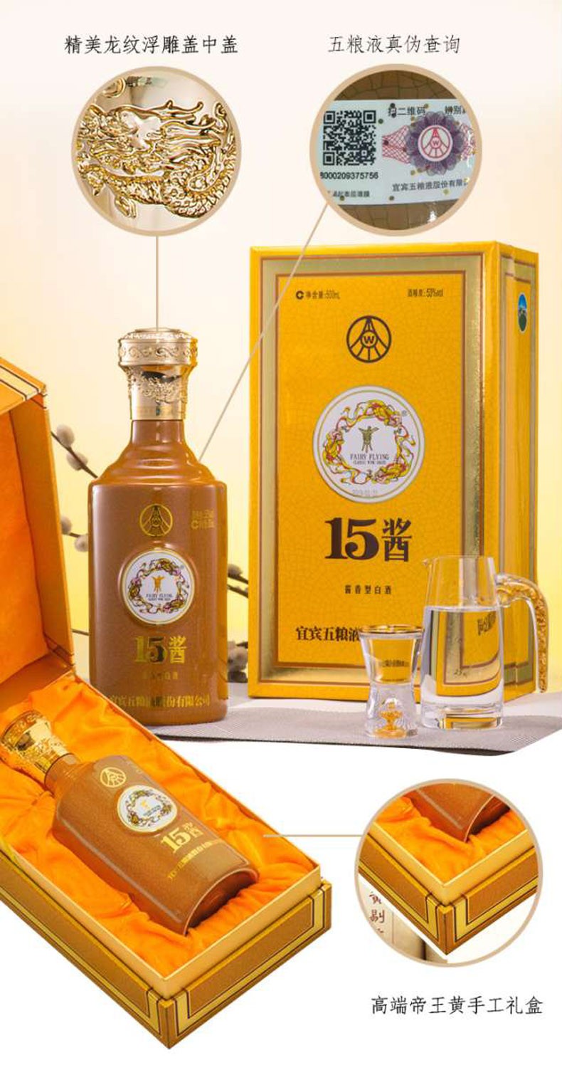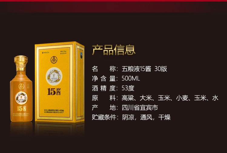 五粮液 15酱 高度白酒 53度(30版)500ml单瓶礼盒装