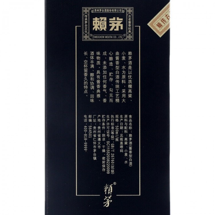 茅台 赖茅 传承蓝 53度 500ml 单瓶装 高度酒酱香型白酒