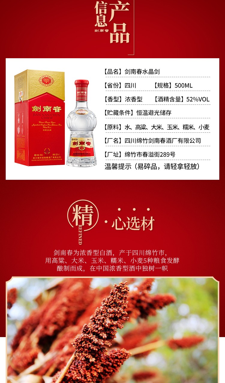 剑南春 水晶剑 52度 500ml单瓶装 浓香型白酒