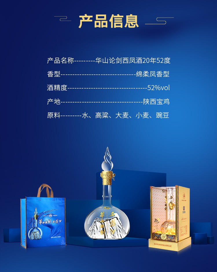 西凤酒 华山论剑20年 52度 500ml 高度白酒 凤香型 单瓶装
