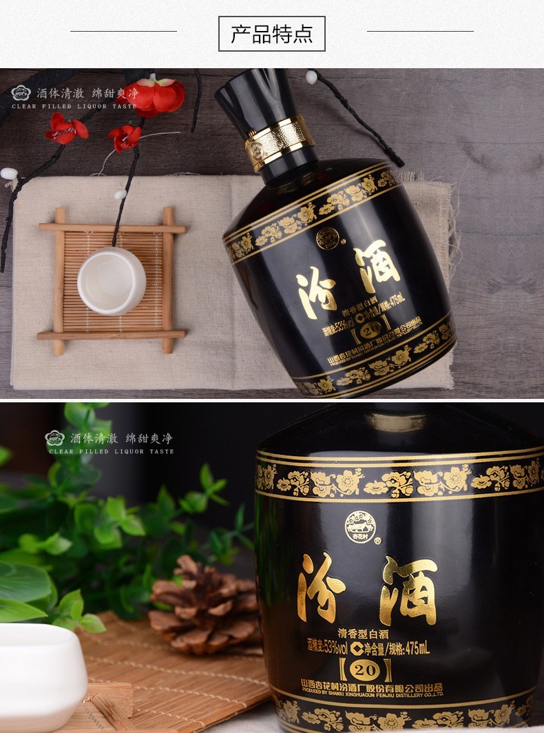 汾酒 53度 金奖20 黑坛 475mL 单瓶 清香型白酒