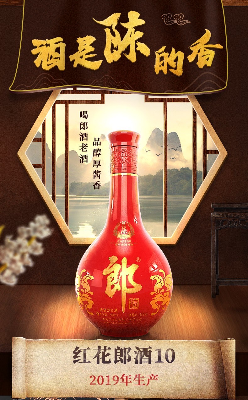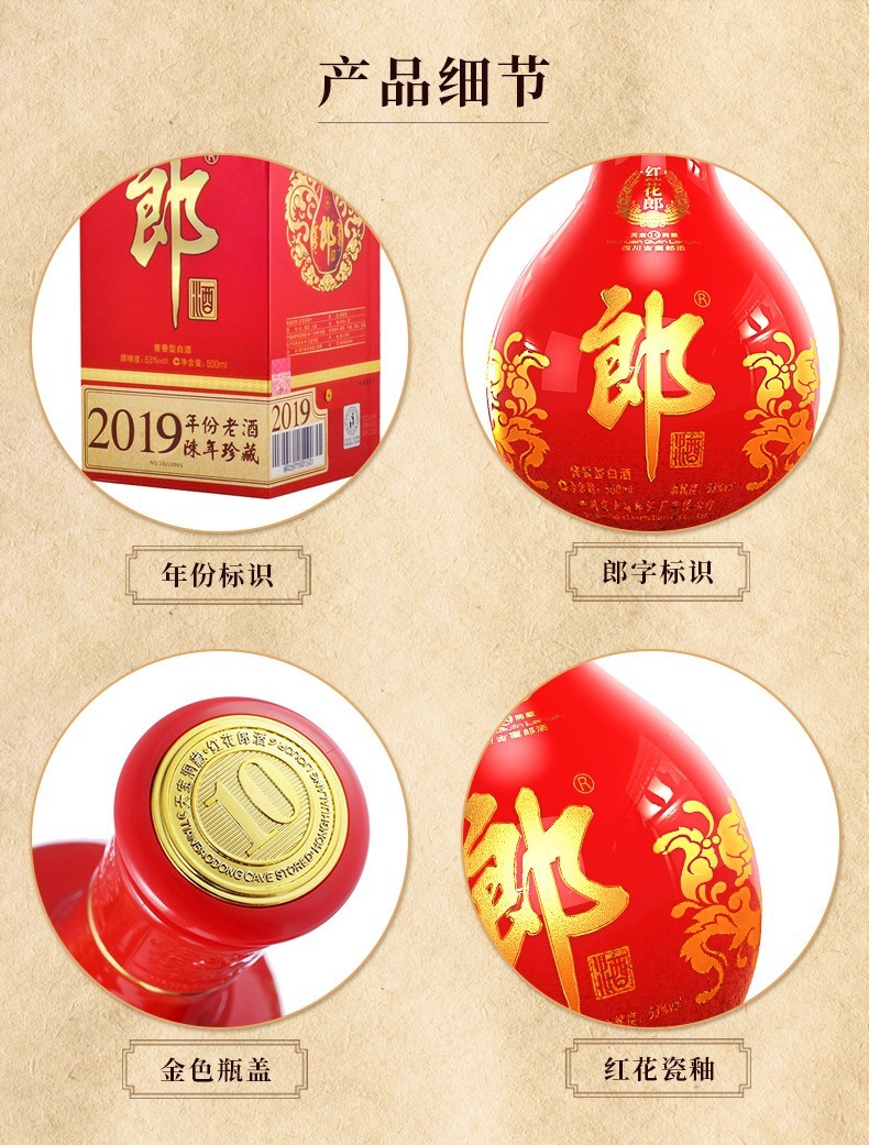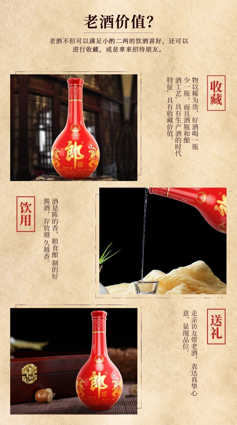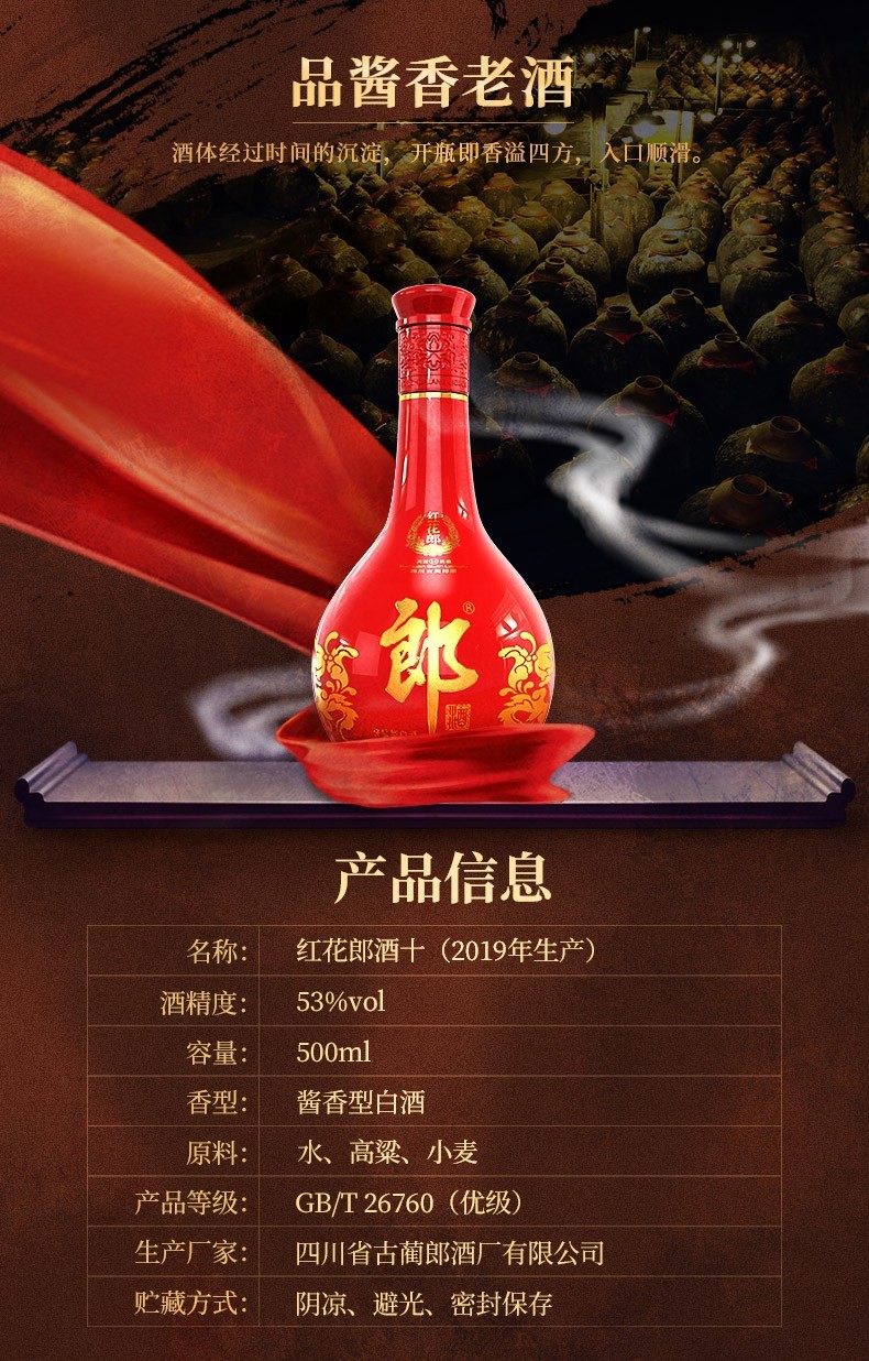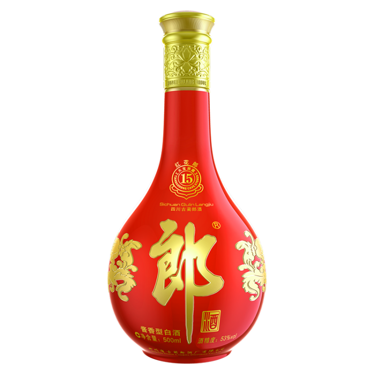 郎酒 红花郎15年 53度 500ml 酱香型白酒 高度白酒