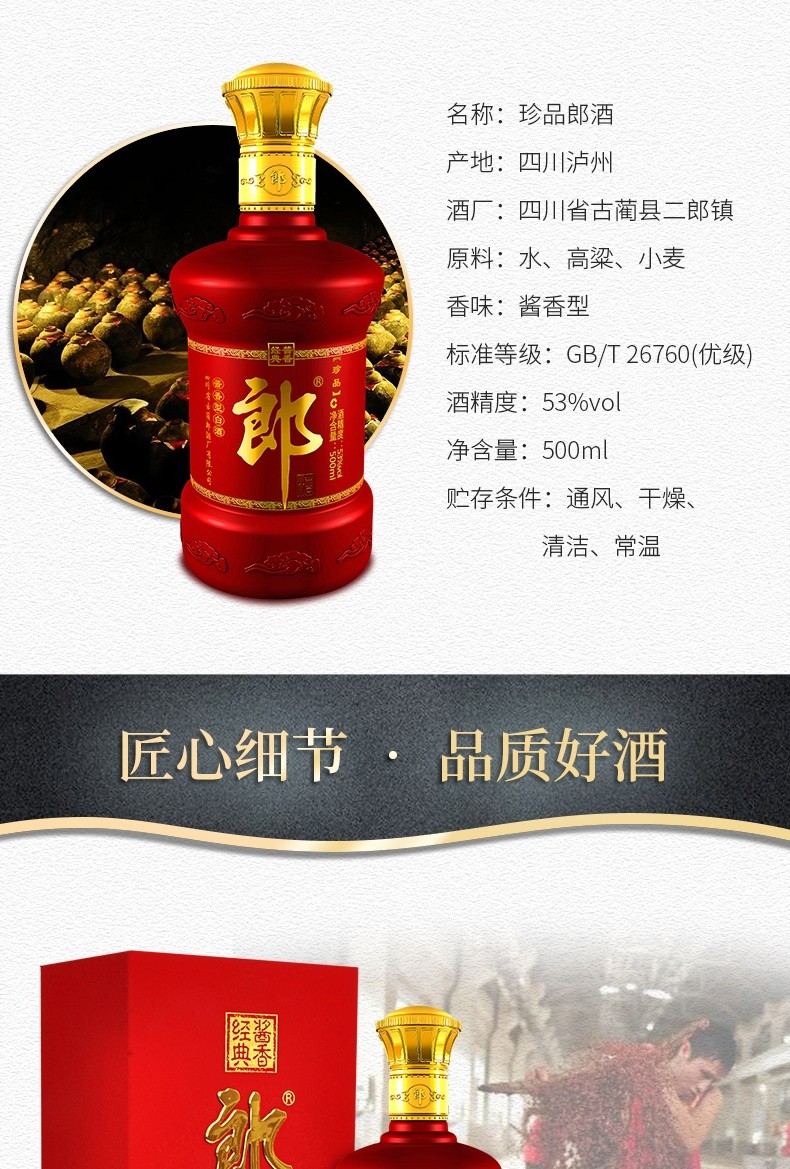 郎酒 珍品郎 53度 500ml 单瓶装 酱香型 高度白酒