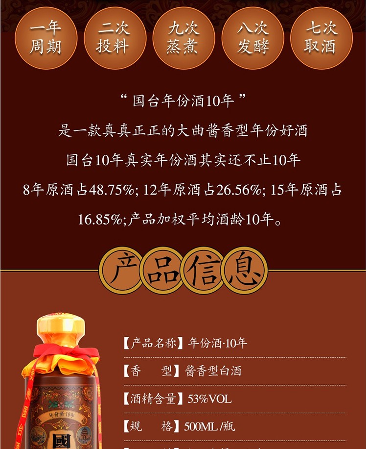 国台 年份10年 53度酱香型白酒 500ml*1瓶
