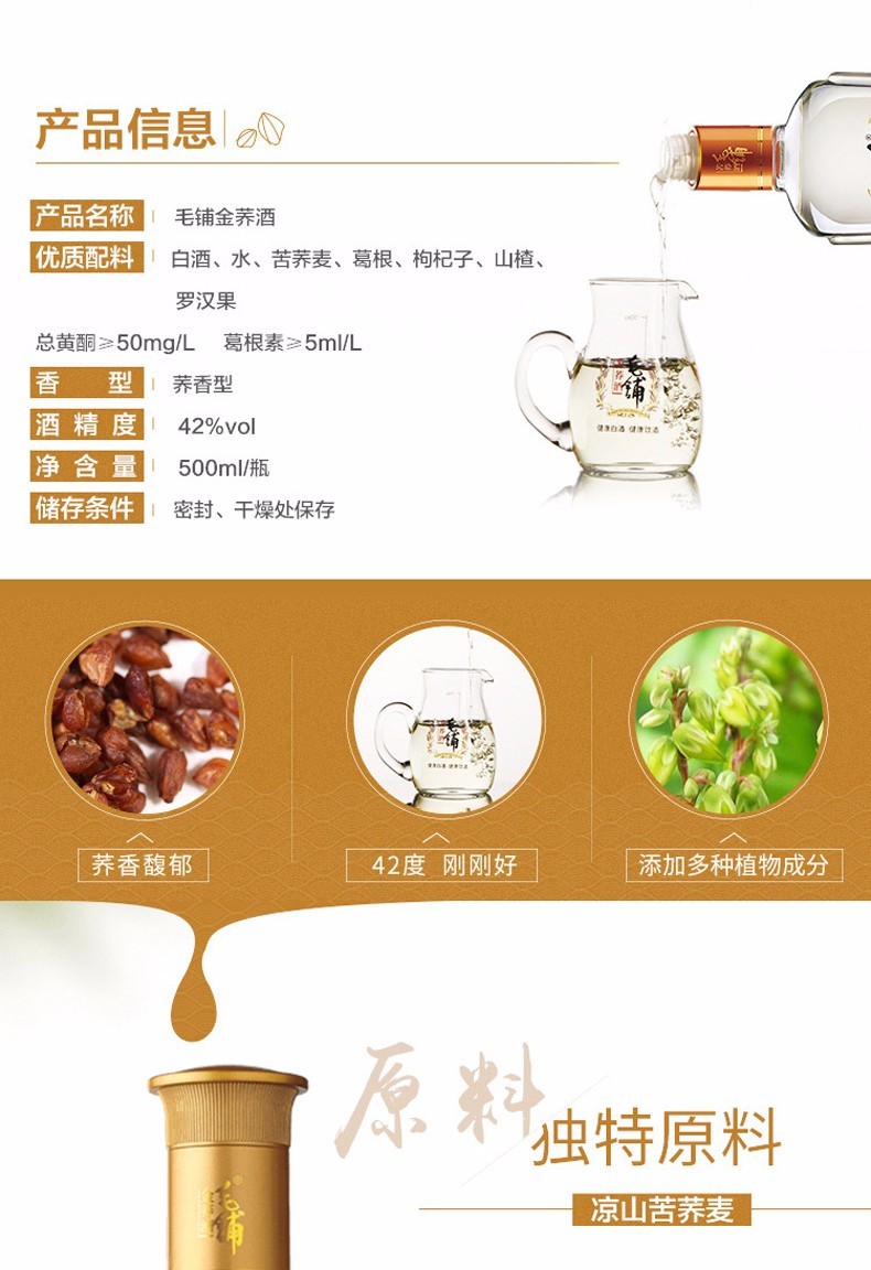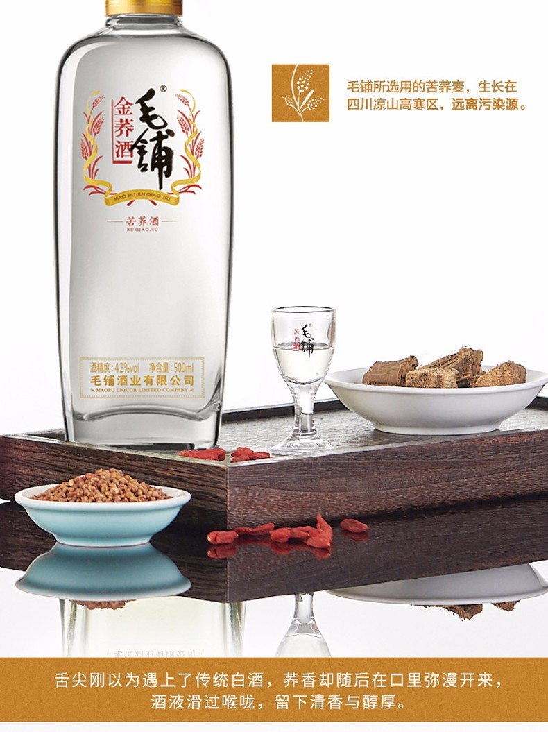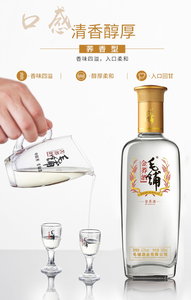 劲牌 毛铺苦荞酒 42度 金荞 500ml 单瓶装 荞香型 白酒 配制酒