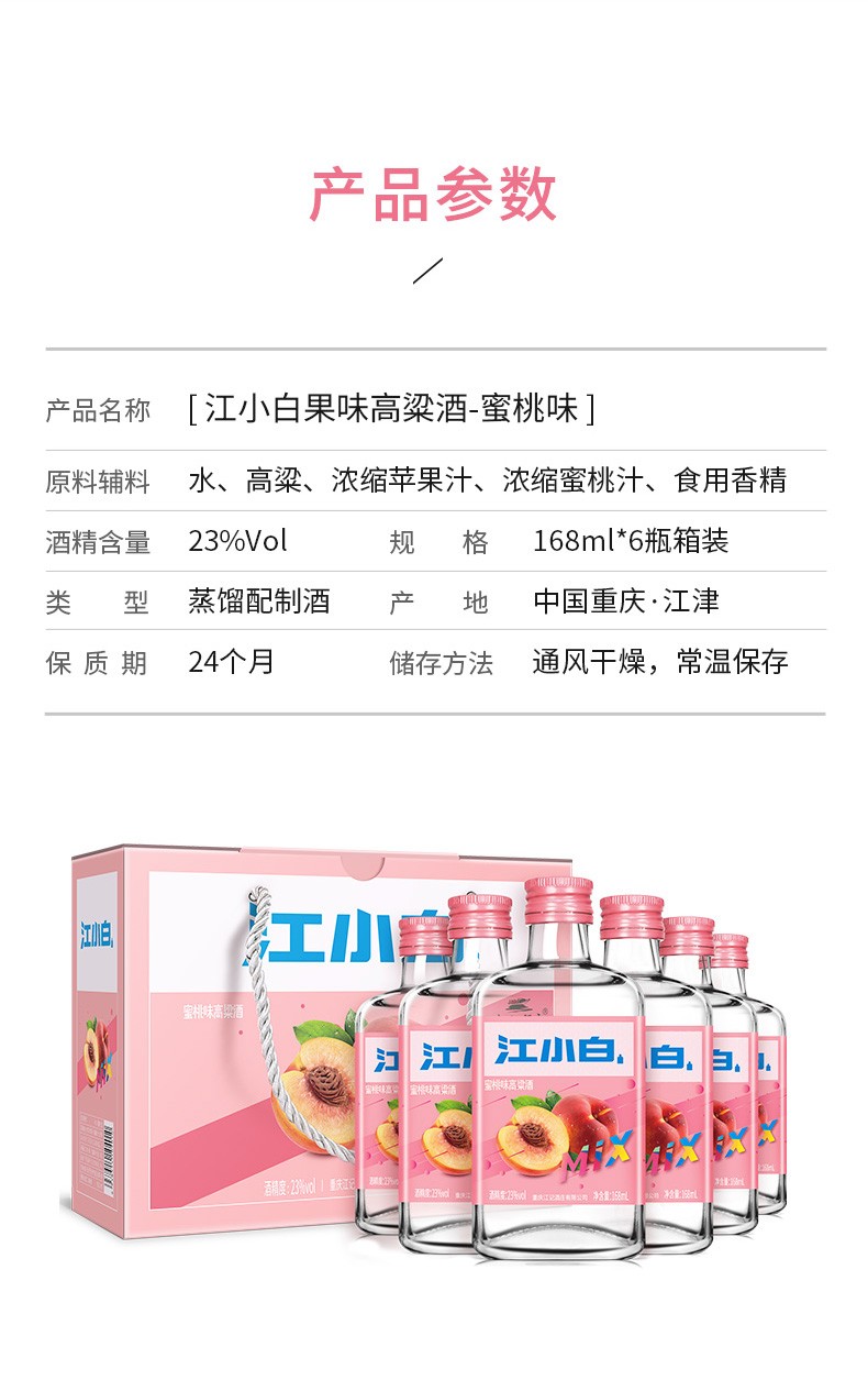 江小白 蜜桃味 23度 168ml/瓶 小瓶白酒