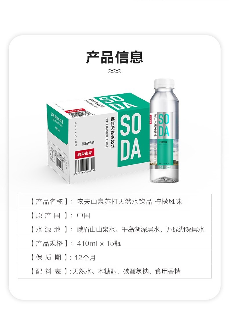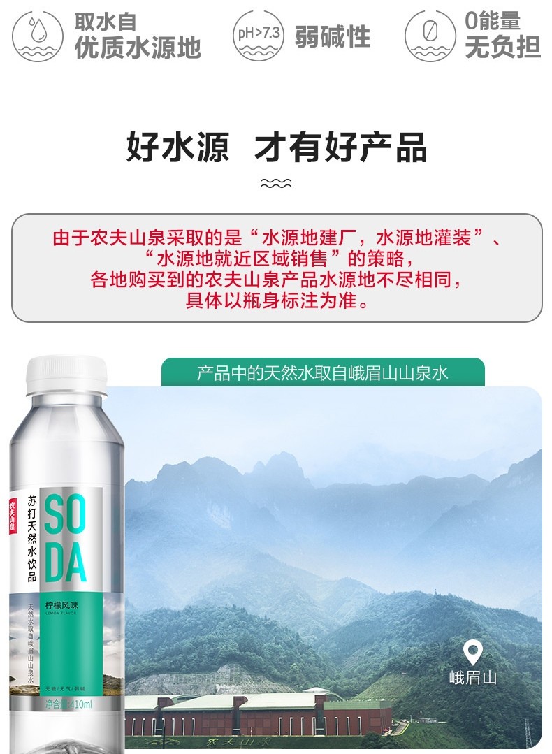 农夫山泉 苏打水饮品 柠檬味 410ml/瓶