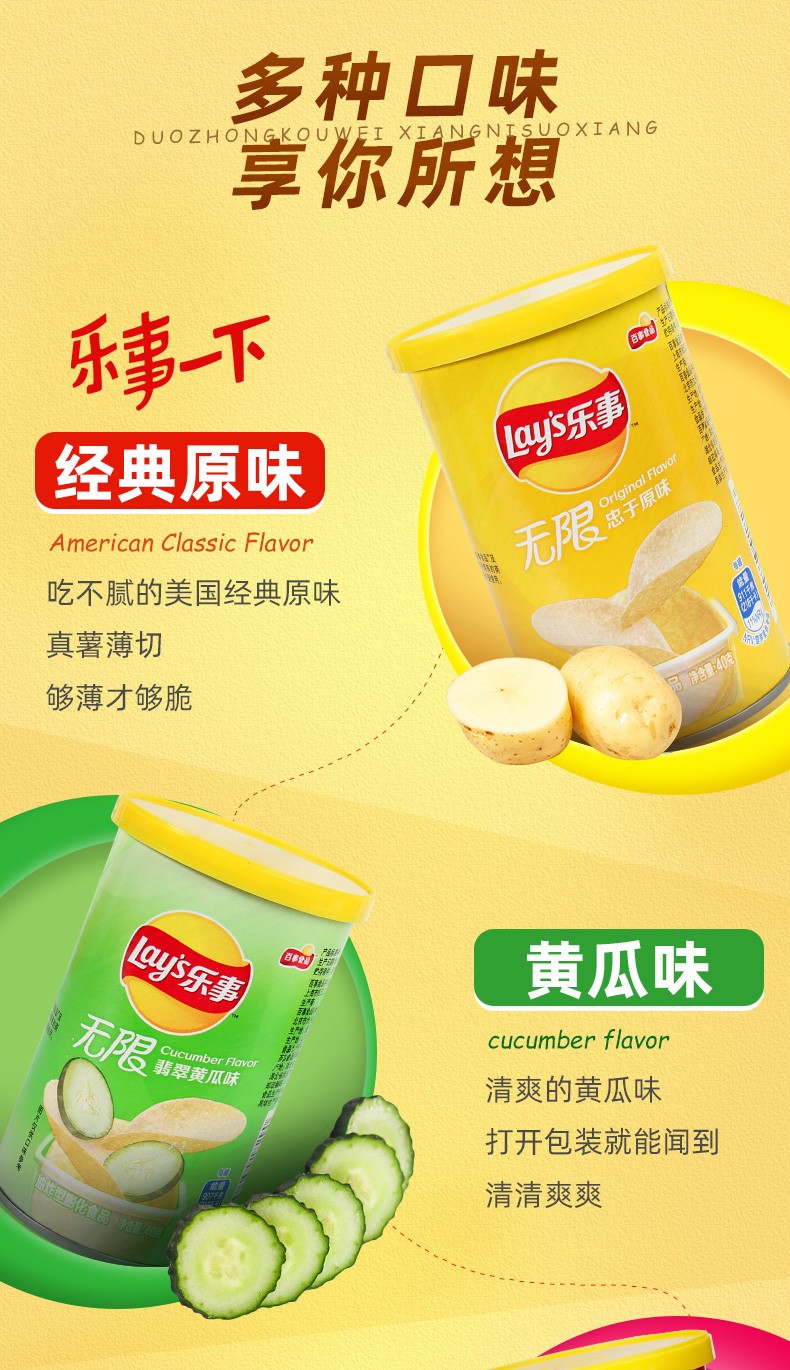 乐事薯片 翡翠黄瓜味 40g 马铃薯膨化零食 罐装