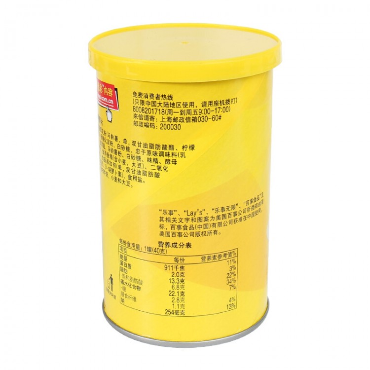 乐事薯片 忠于原味 40g 马铃薯膨化零食 罐装