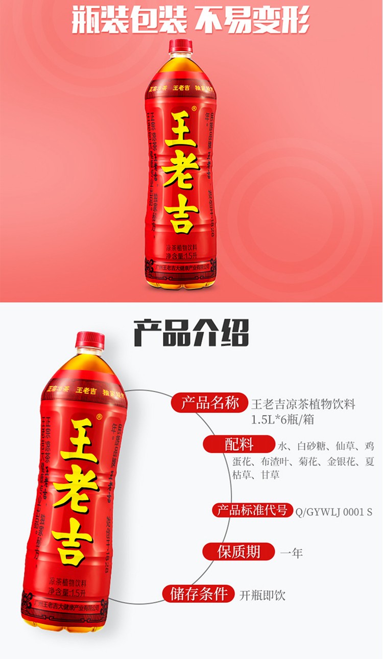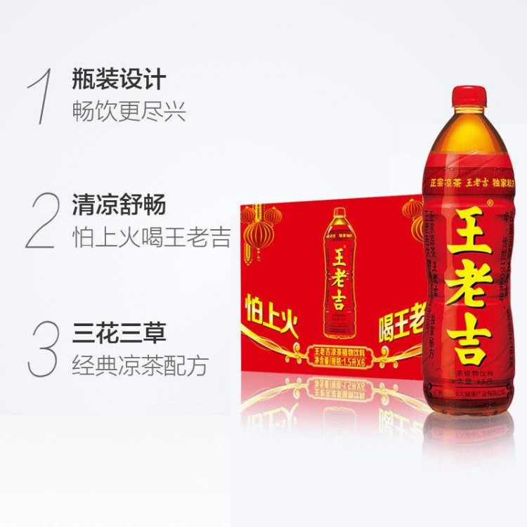 王老吉凉茶 草本植物清凉饮料 1.5L*6瓶 分享大瓶装 中华老字号(新老包装,随机发货)