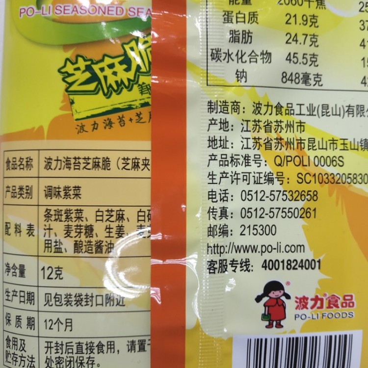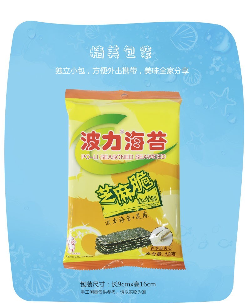波力海苔 芝麻脆 12克/包 香脆即食儿童零食营养海味小吃芝麻夹心海苔