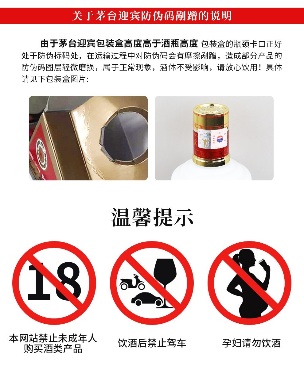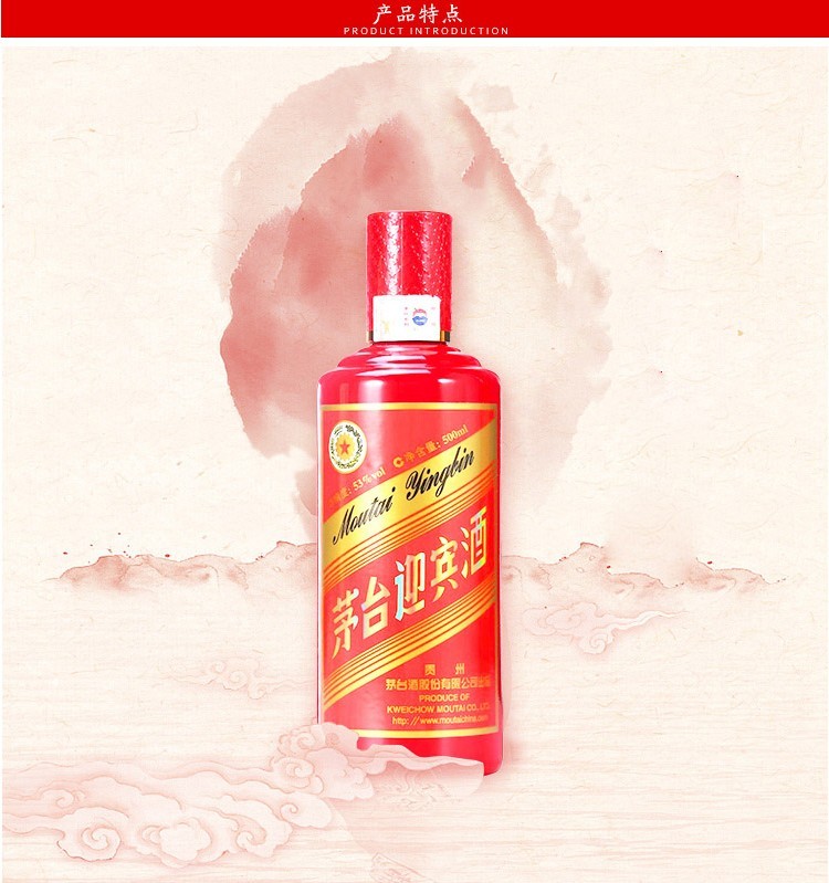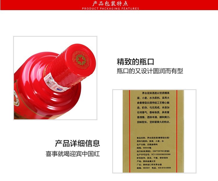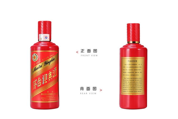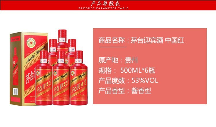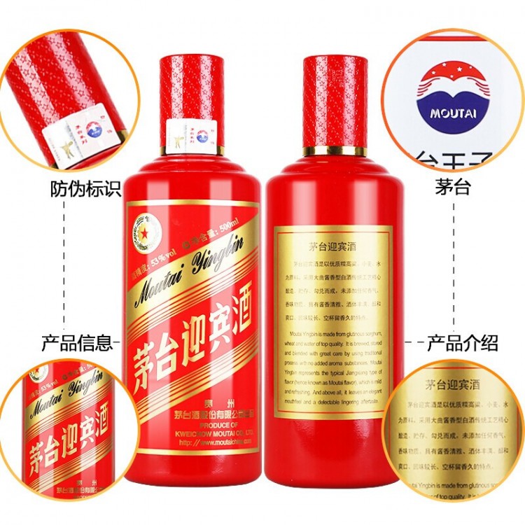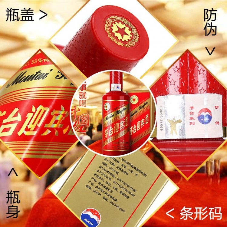 茅台迎宾酒 中国红 53度 500ml/瓶 酱香型白酒 高度婚宴喜庆礼盒酒水