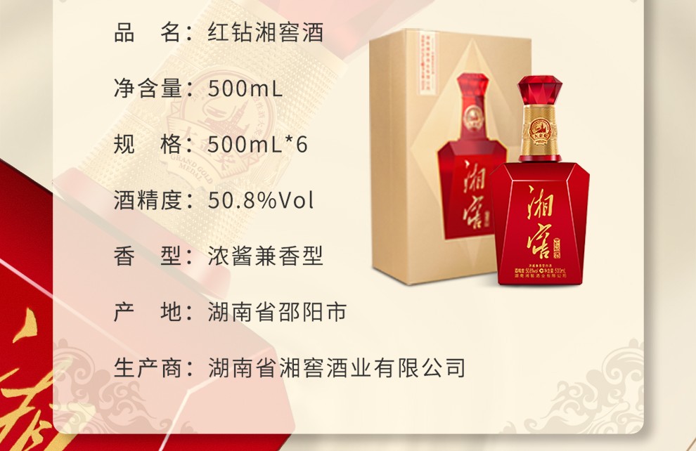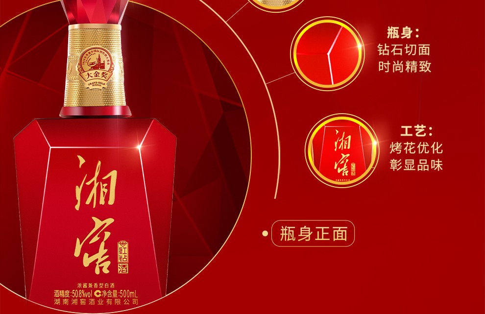 大金奖 红钻·湘窖酒 500ML*1瓶 礼盒装 浓酱兼香型 50.8度