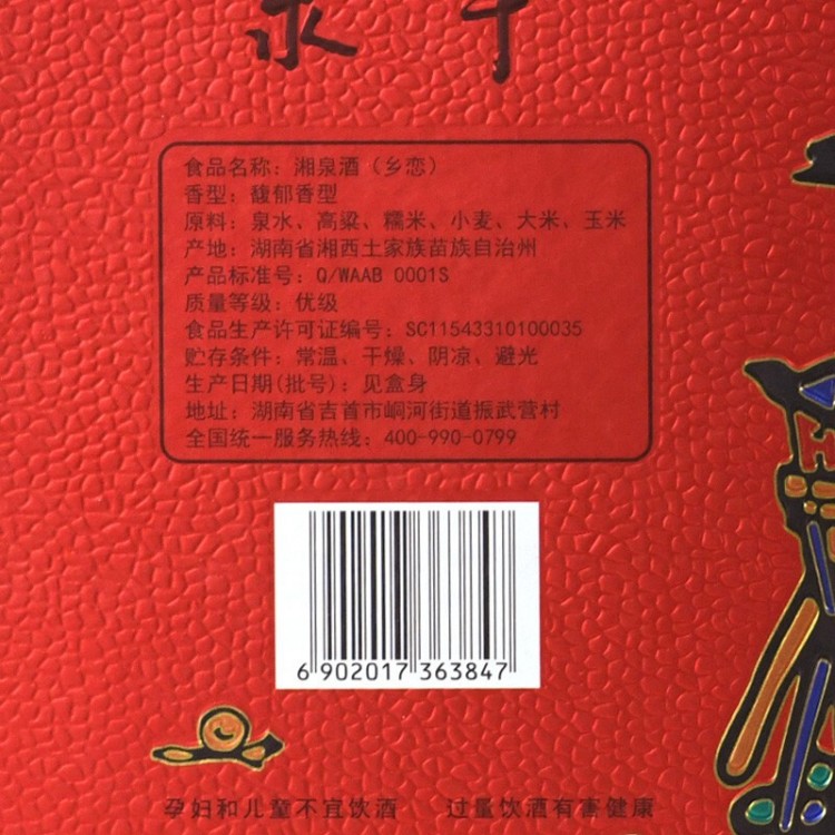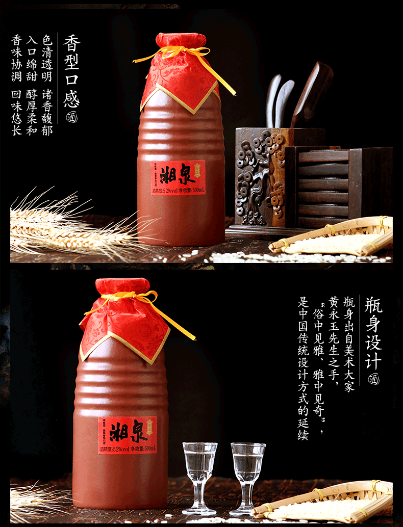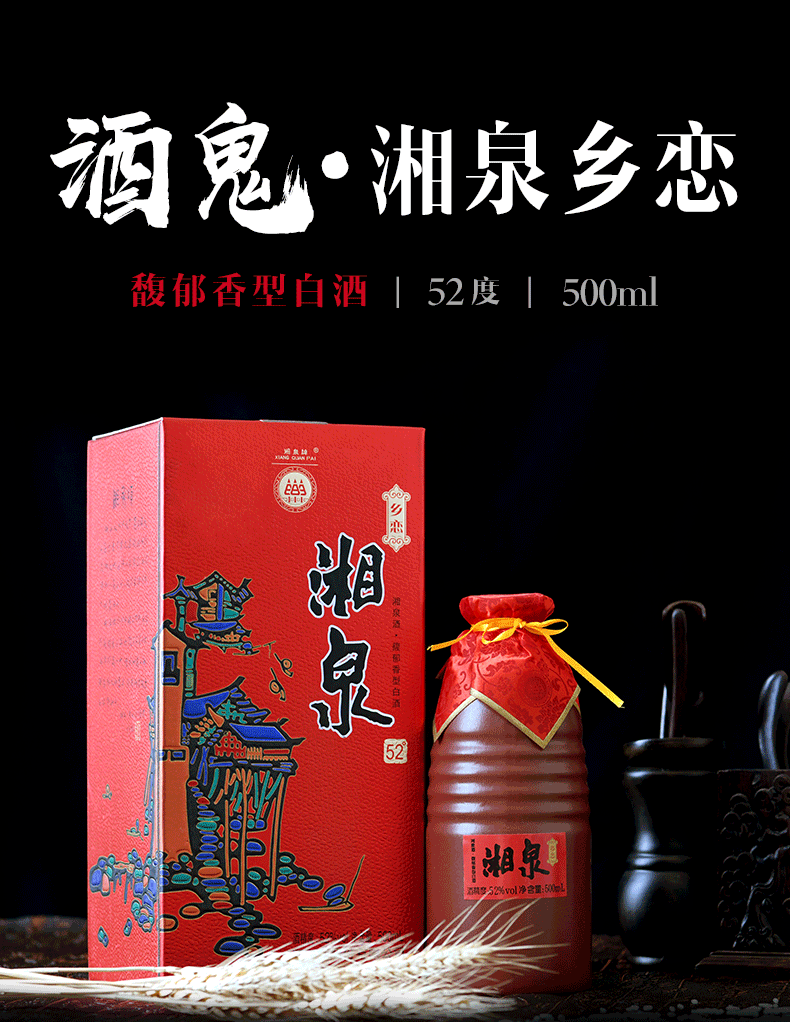 湘泉情怀系列 乡恋 52度 500ml/瓶 白酒 单瓶装 酒鬼酒