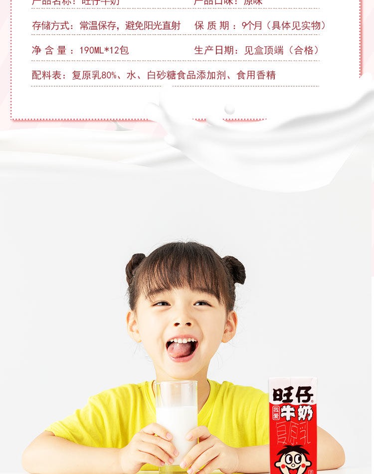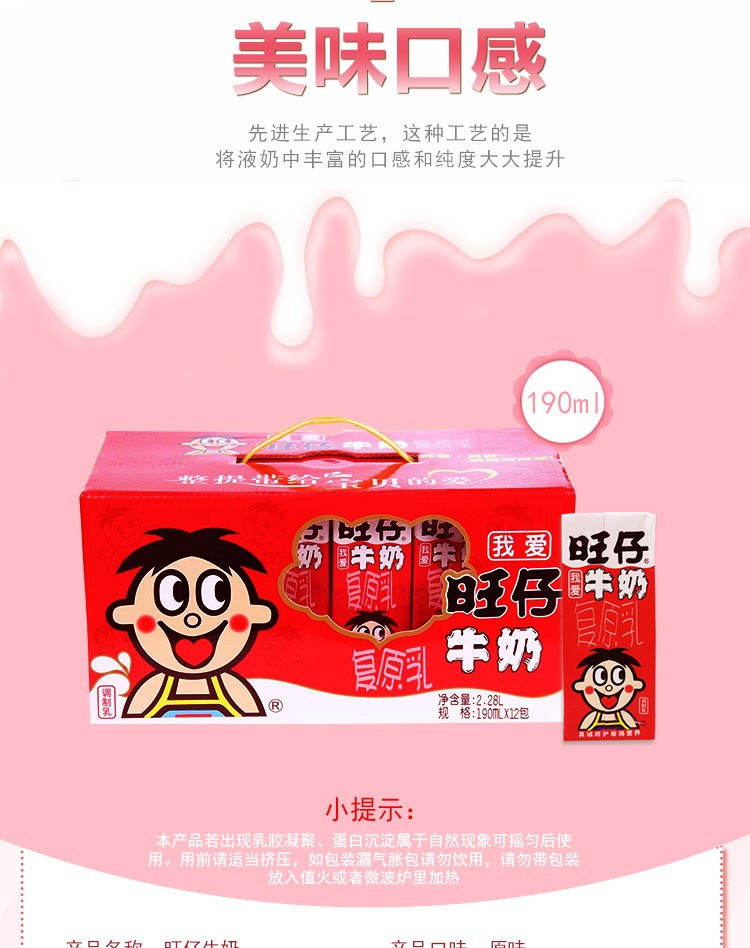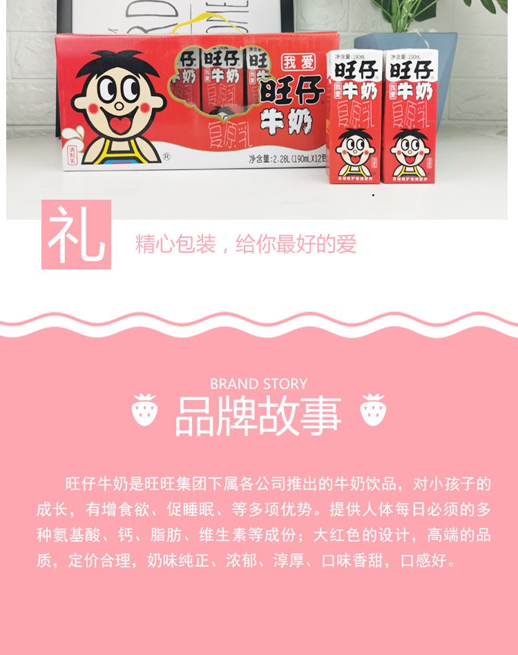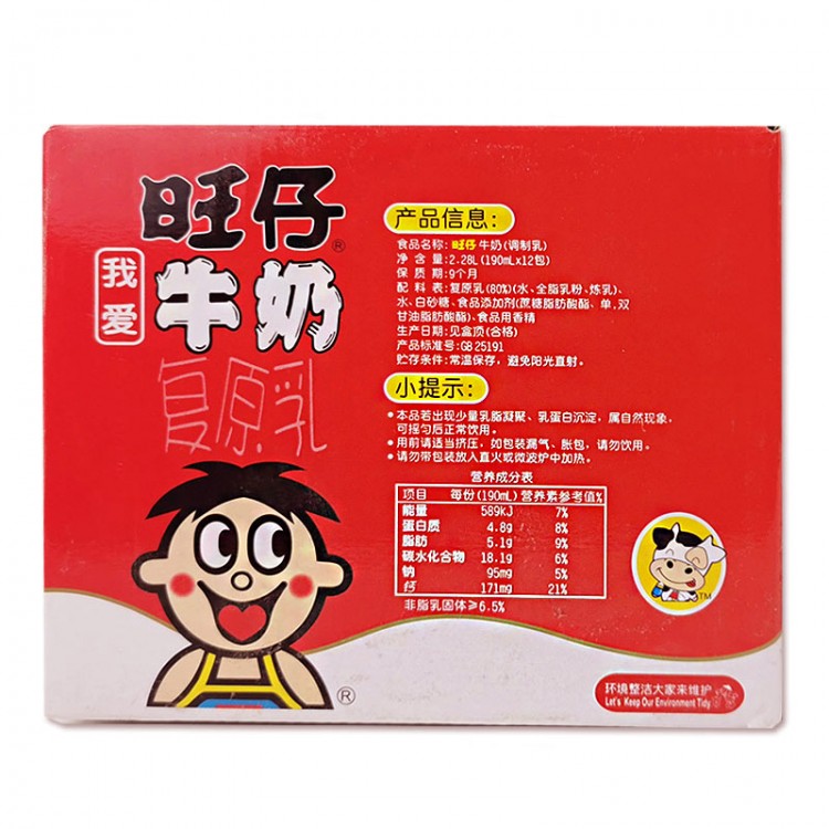 旺仔牛奶 190ml*12盒 礼盒装 甜牛奶早餐儿童学生饮料 旺旺