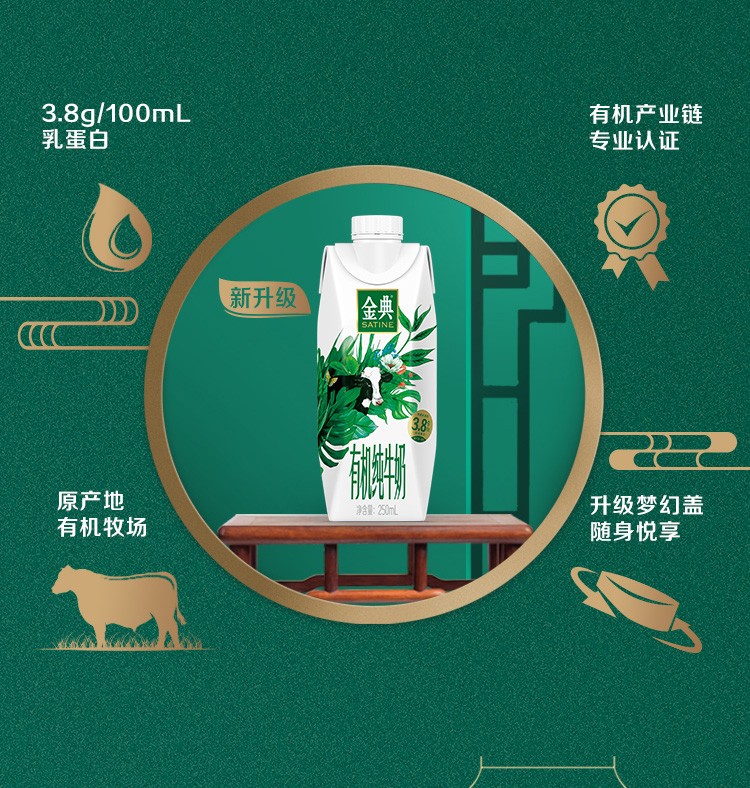 伊利 金典 有机纯牛奶 梦幻盖250ml*10盒/箱(礼盒装)3.8g升级乳蛋白 原生高钙 有机可追溯