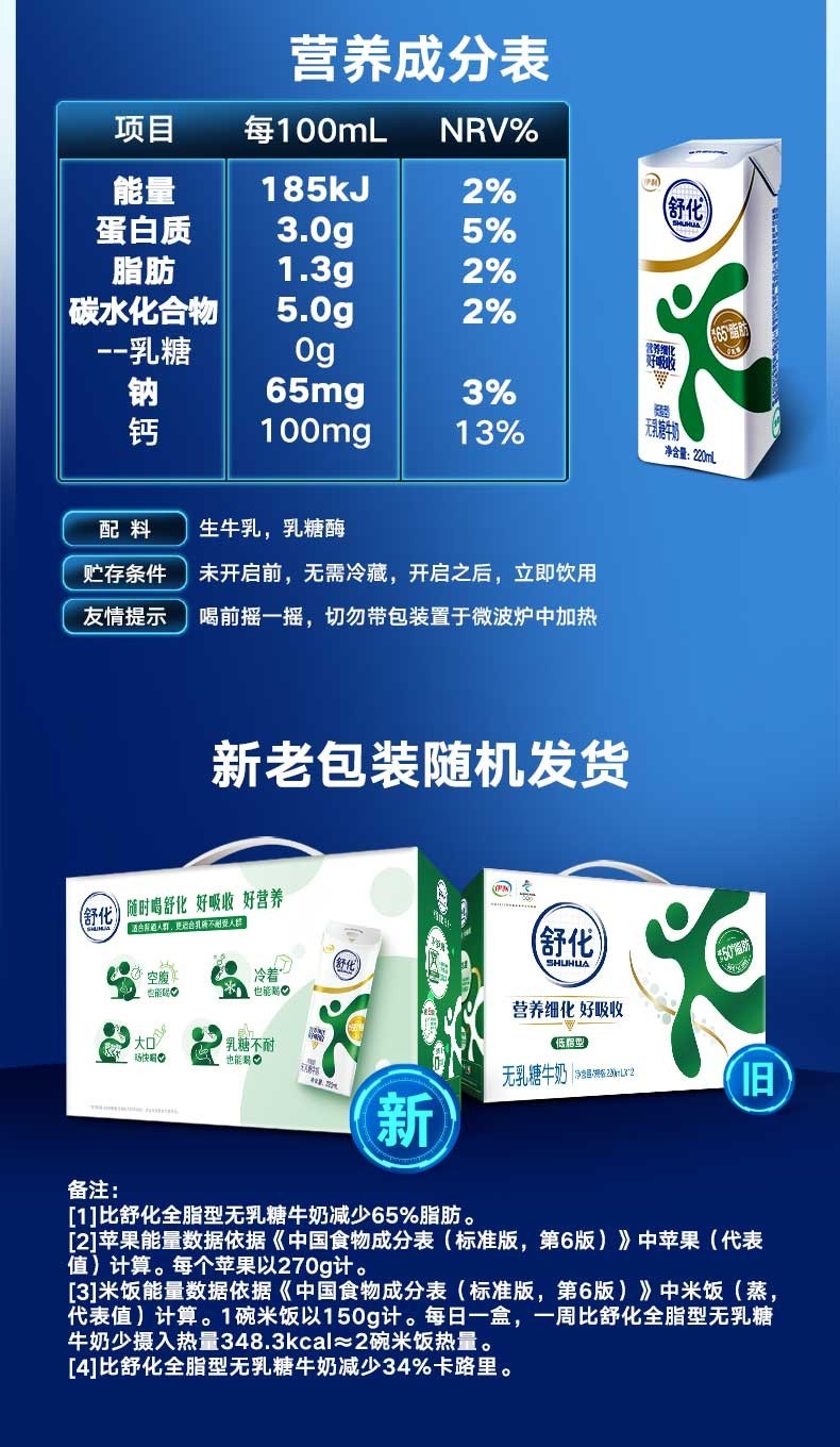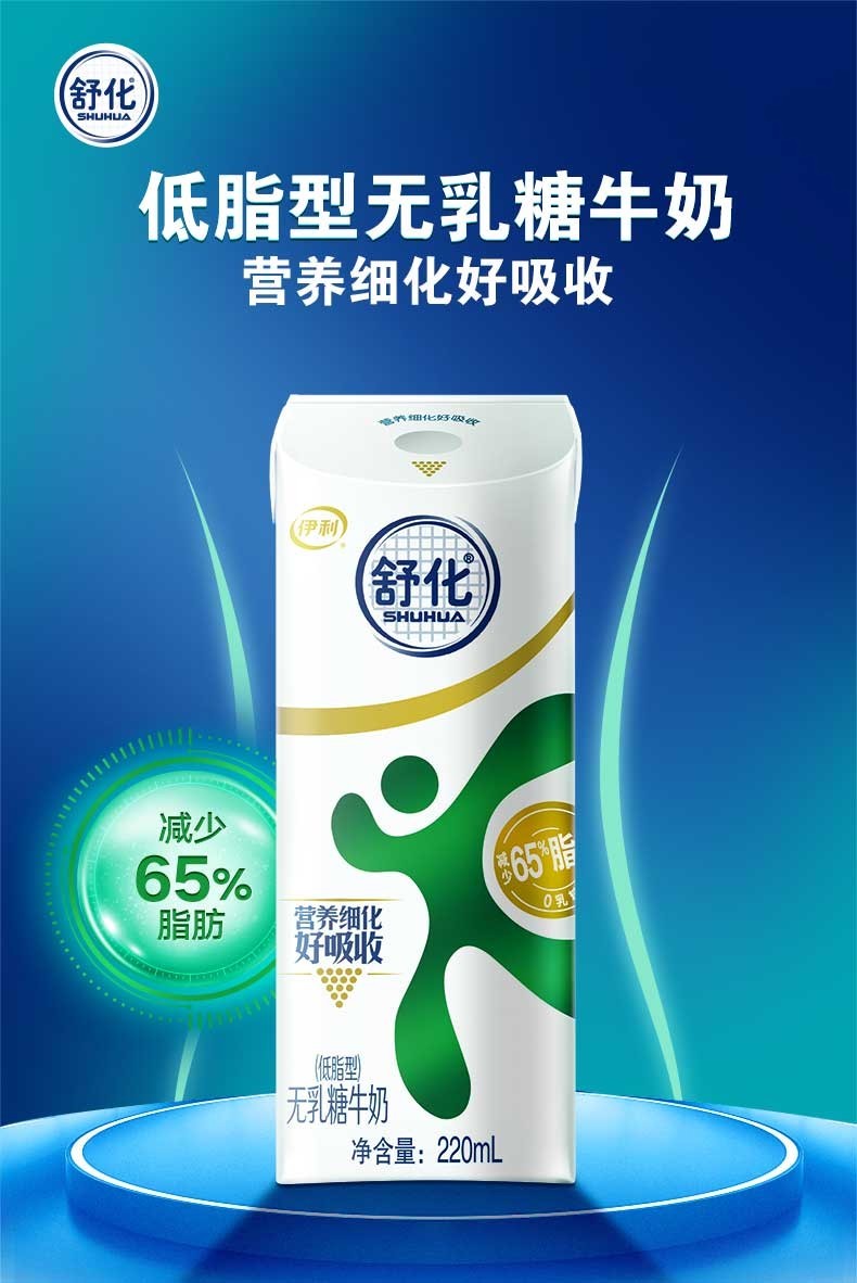 伊利舒化奶 低脂型无乳糖牛奶 220ml*12盒/箱 零乳糖好吸收 缓解乳糖不耐受