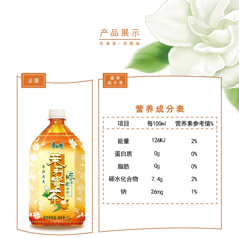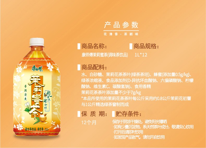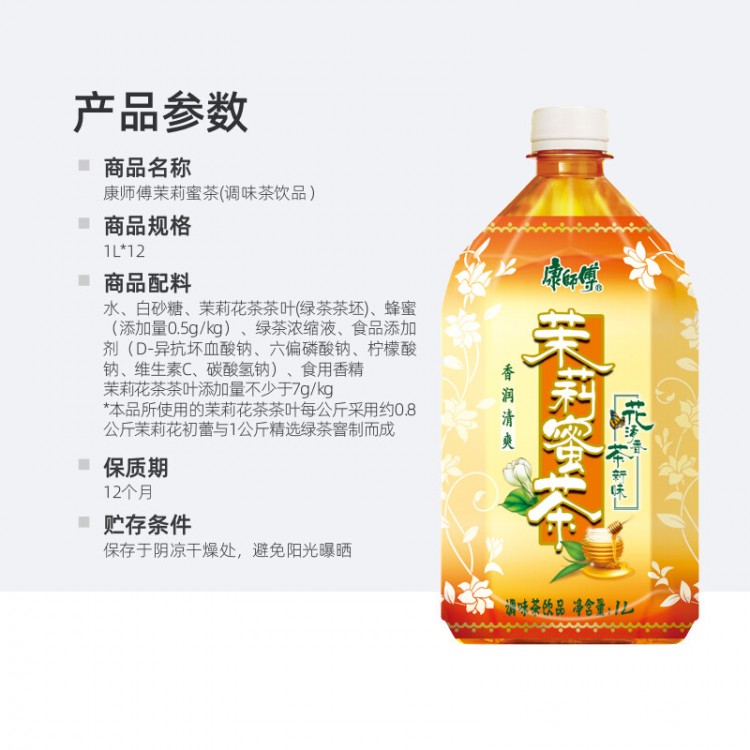 康师傅 茉莉蜜茶1L*12瓶 茉莉花茶饮料清香浪漫整箱
