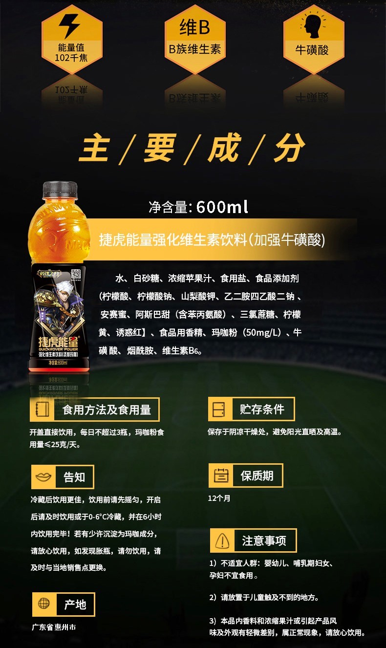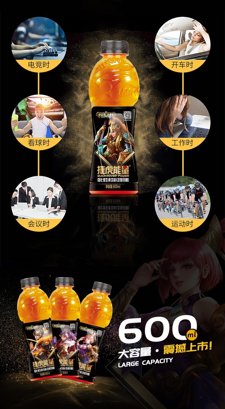捷虎能量 强化维生素功能运动饮料 600ml*15瓶 添加玛咖 整箱