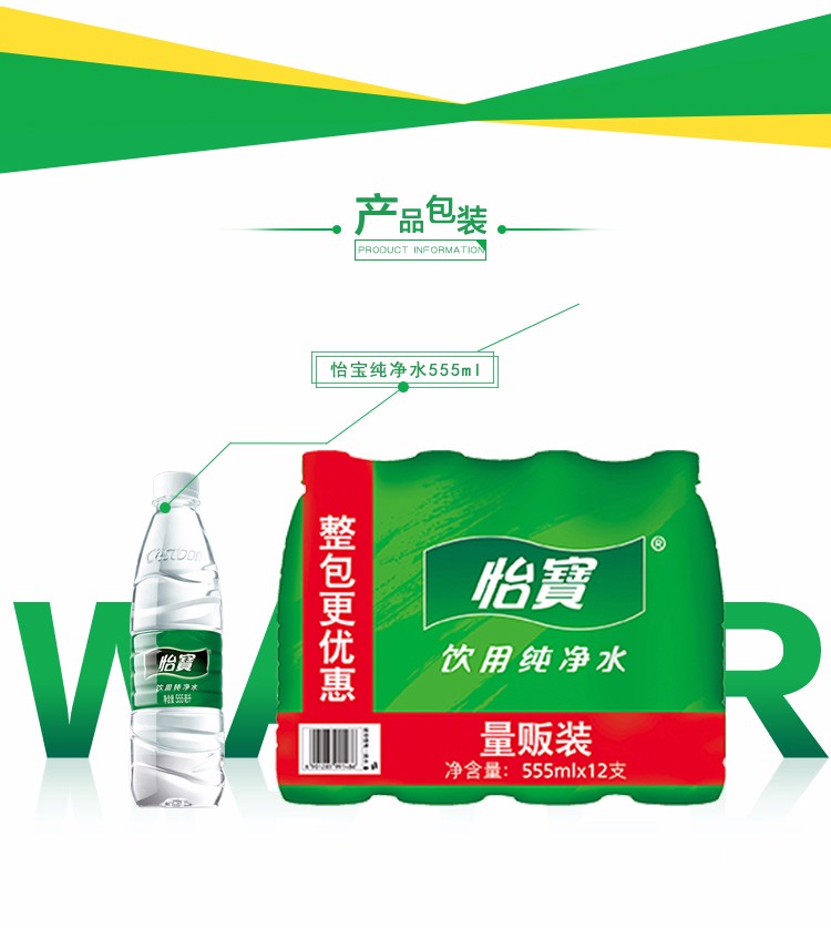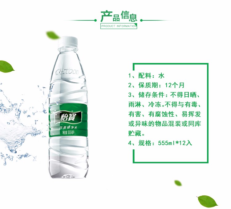 怡宝 纯净水555ml*24 饮用水 中瓶
