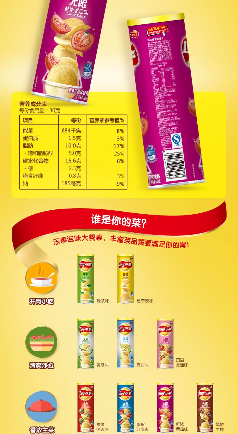 乐事薯片无限鲜浓番茄味104g/罐 办公零食
