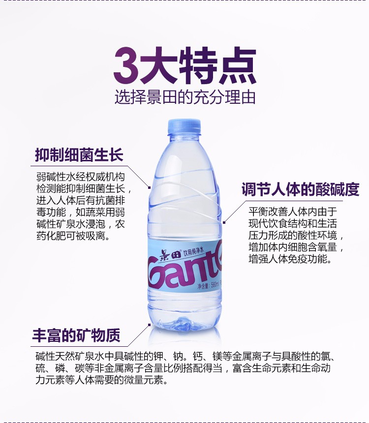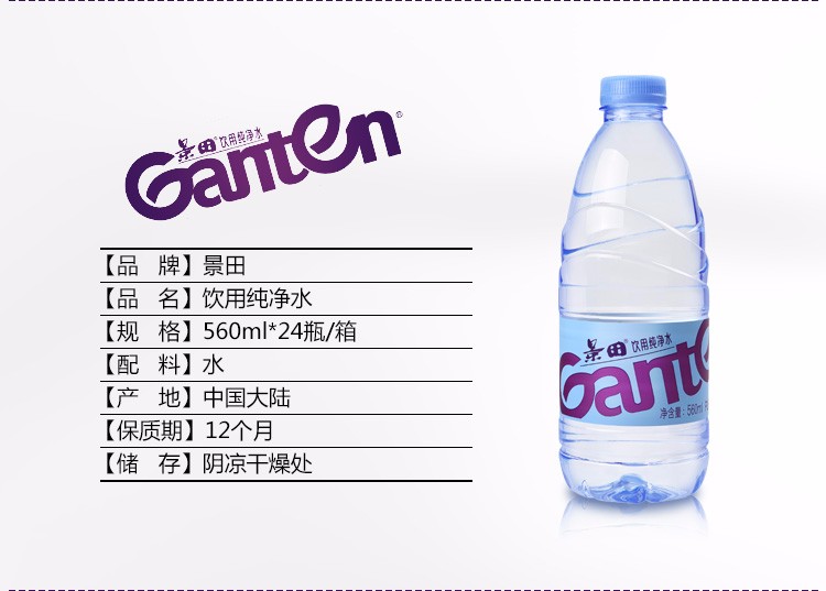 景田 饮用纯净水560ml*24瓶/箱