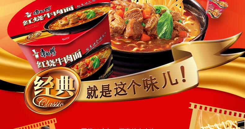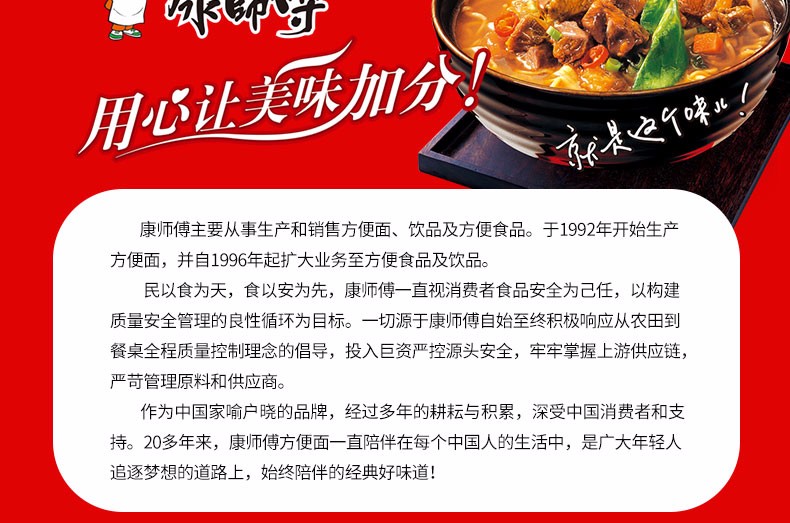 康师傅红烧牛肉面 经典方便面泡面条开心桶装面