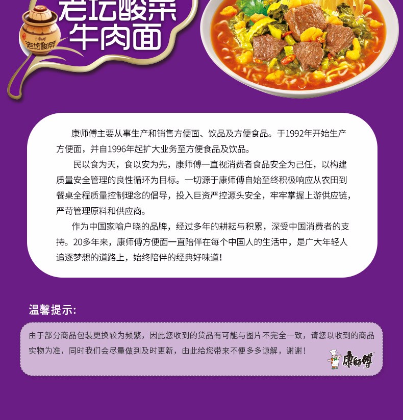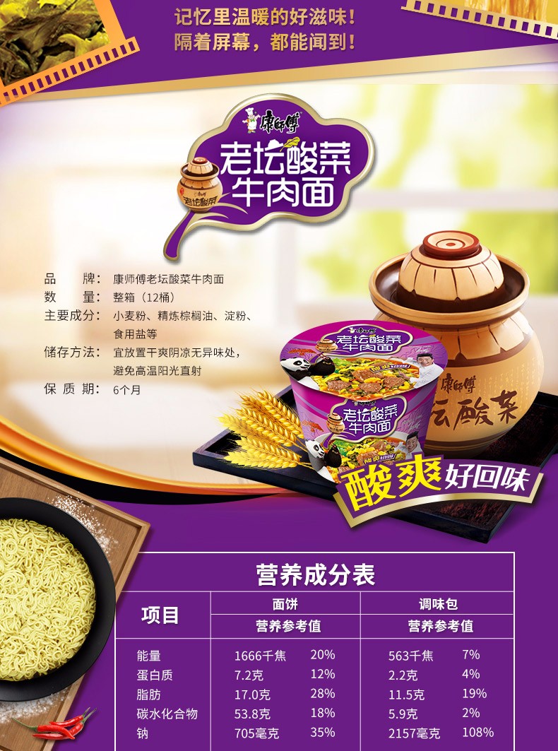 康师傅 开心桶酸菜牛肉面 119g/桶 方便面泡面