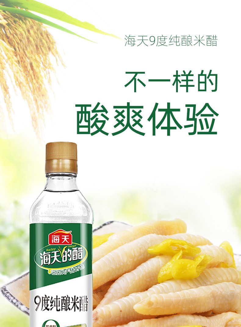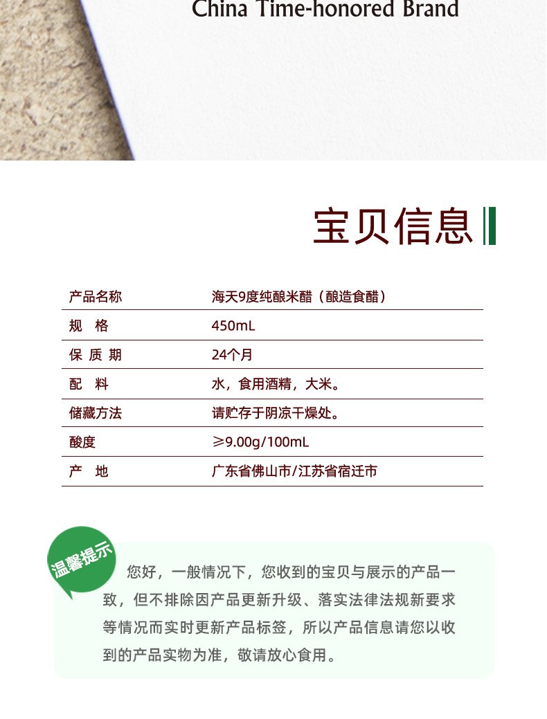 海天 9度米醋450ml 白醋 浸蛋醋 纯酿 零添加防腐剂食醋