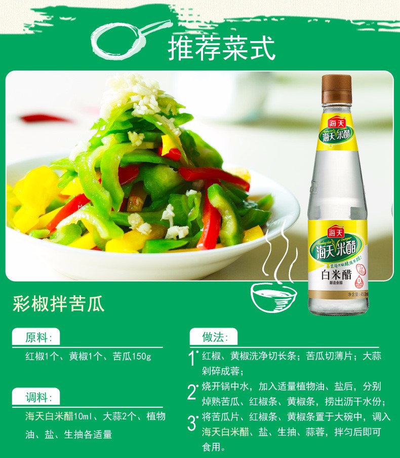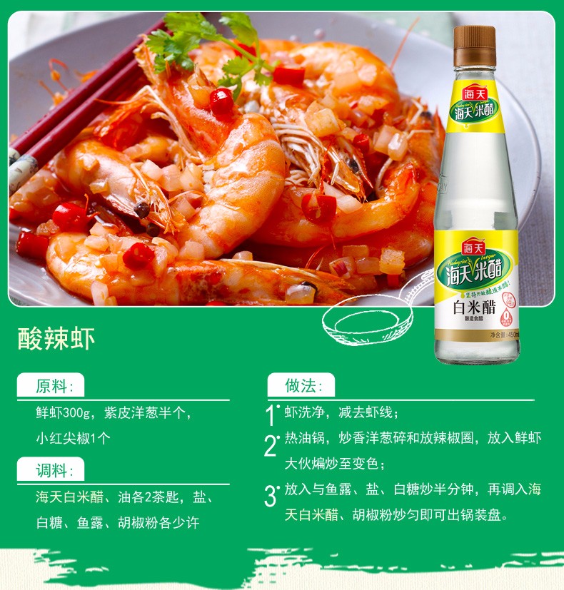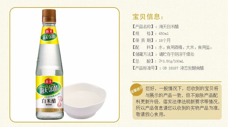 海天白米醋 450ml 调料酿造米醋炒菜 蘸料醋 白醋