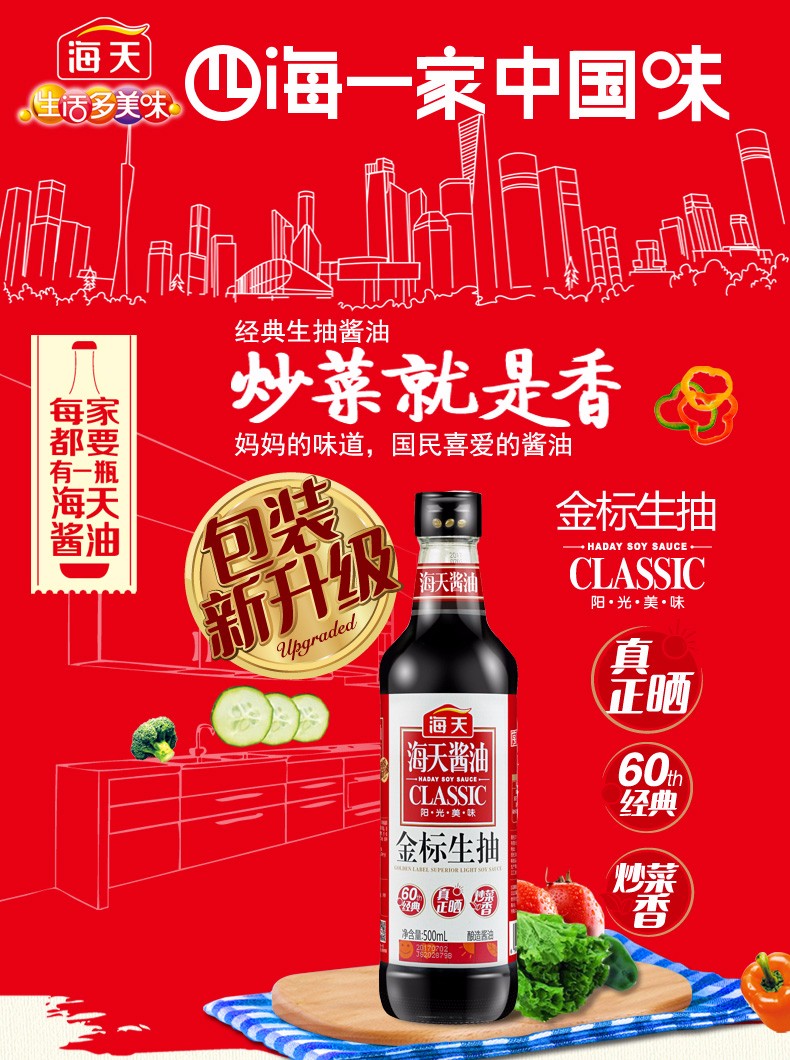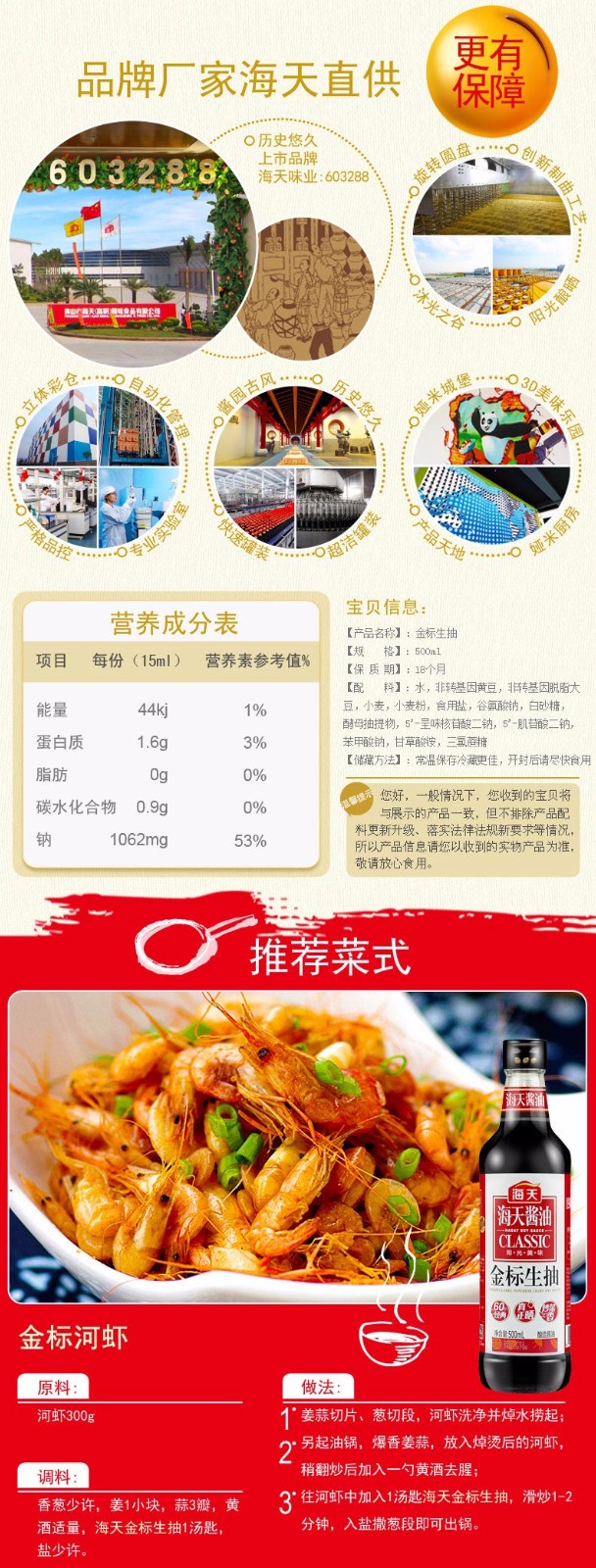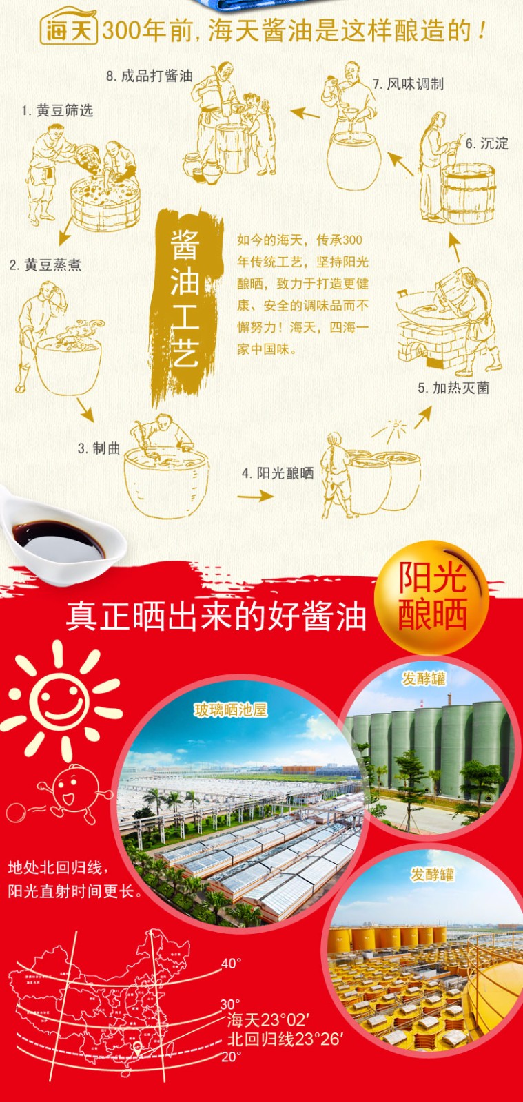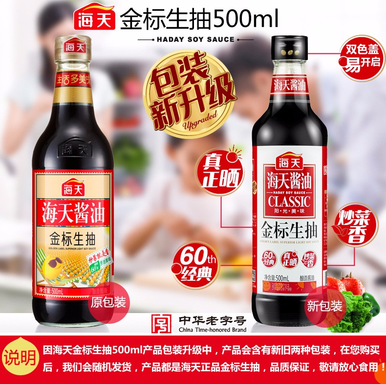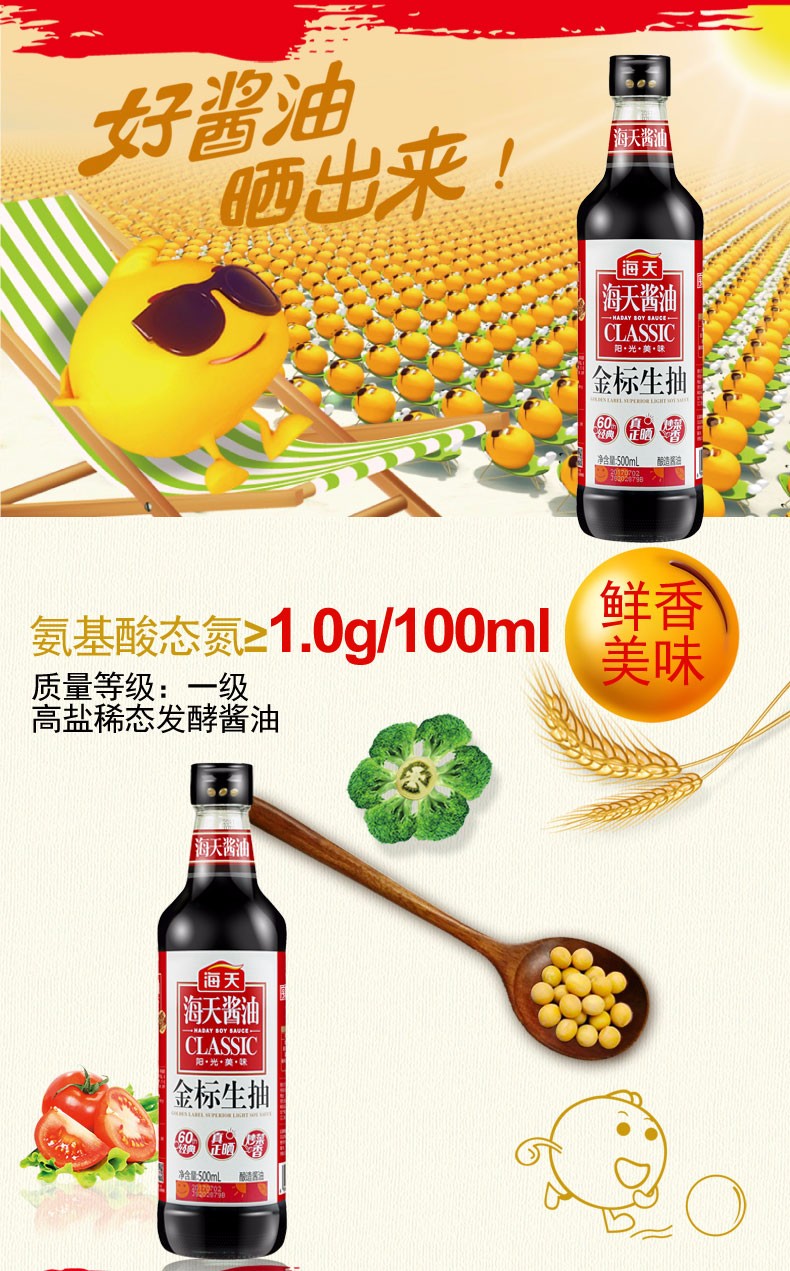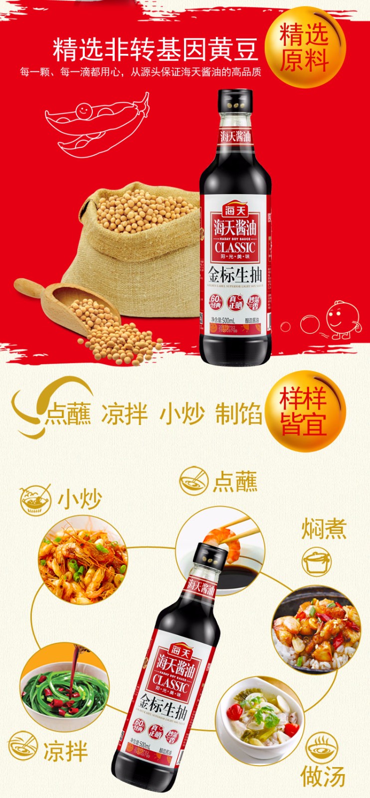 海天金标生抽 500ml阳光优质因黄豆酿造酱油 蘸料